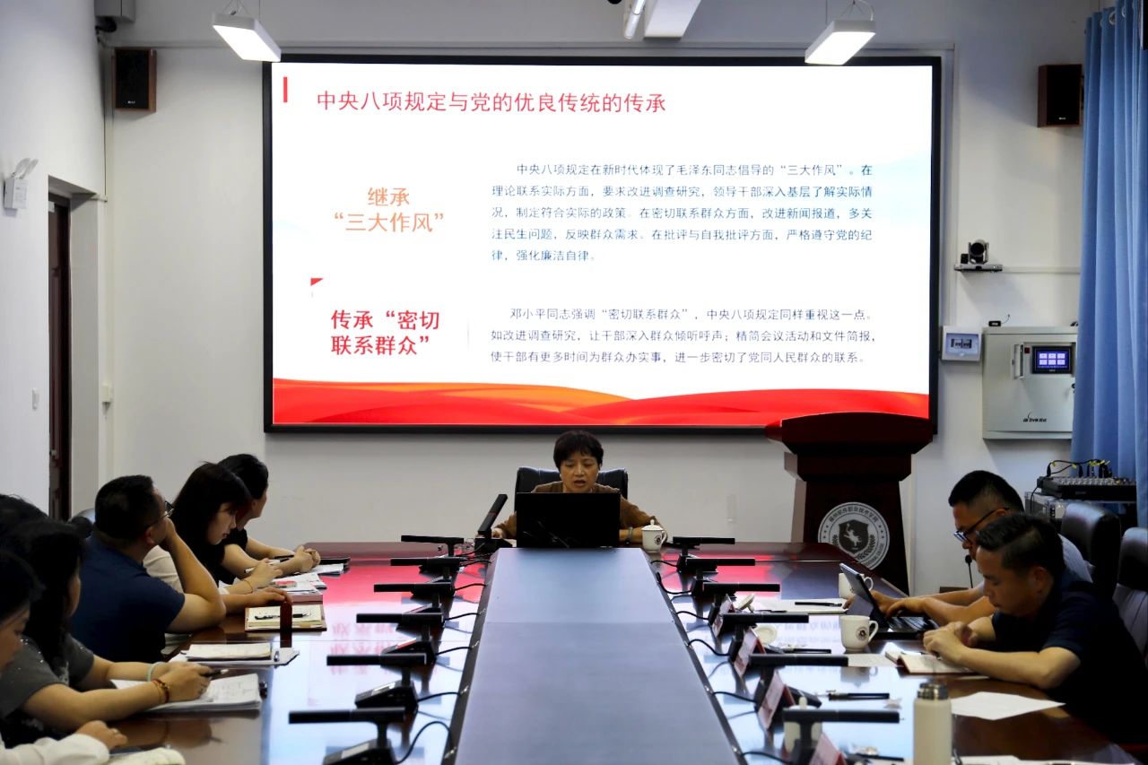 会上,林莺书记紧扣全面从严治党要求,系统阐释了中央八项规定精神的丰富内涵和加强作风建设的重大意义。她指出,党的十八大以来,习近平总书记围绕加强党的作风建设发表一系列重要论述,提出一系列新思想新观点新论断,解决了新形势下作风建设抓什么、怎么抓的问题,把党对作风建设规律的认识提升到了一个新高度。她结合近年来教育系统及其他领域的典型案例,对违反中央八项规定精神的突出问题进行深入剖析。她以违规公款吃喝、超标准公务接待、巧立名目发放津贴补贴、变相公款旅游等具体表现为切入点,通过还原事件经过、解读纪法条款、剖析思想根源,用 “身边事” 警醒 “身边人”,以案明纪、以案释法,切实强化警示教育的震慑效应。她强调,各级党组织要始终坚持严的基调、严的措施、严的氛围,巩固学习教育成果,把作风建设引向深入,以优良作风凝心聚力干事创业。