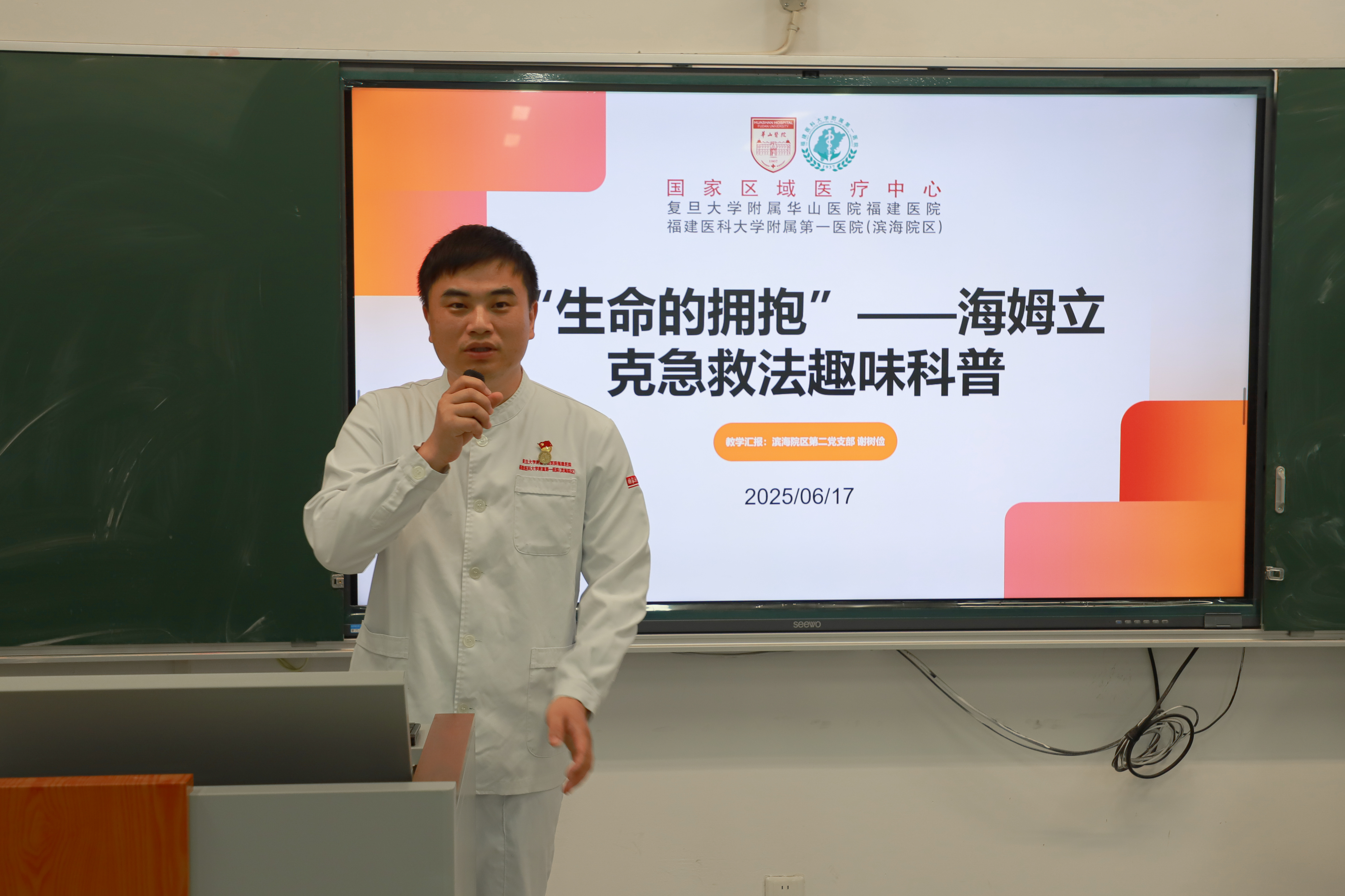 活动伊始,复旦大学附属华山医院(福建医院)护理部执行主任汪慧娟发表致辞。她表示,作为医护工作者,她深知生命救援 “黄金四分钟” 的珍贵;作为共产党员,更牢记 “人民至上、生命至上” 的初心使命,希望通过本次活动,让党员先锋作用扎根服务群众第一线,让急救知识成为校园安全的坚实防线。