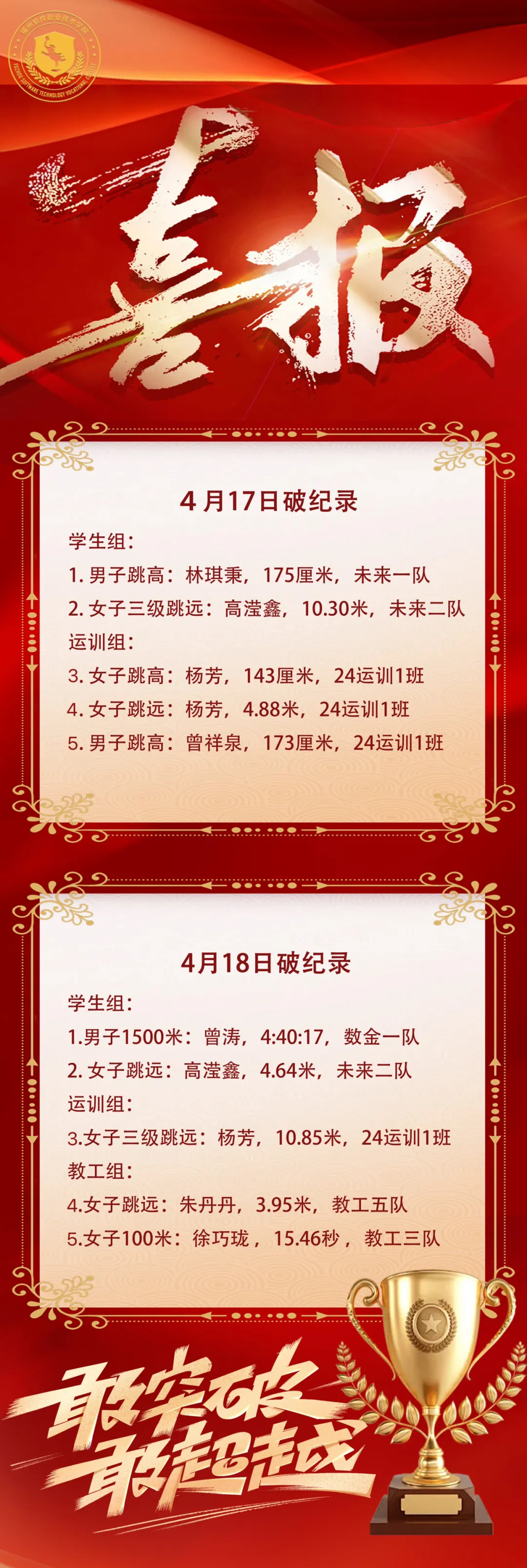 组委会副秘书长、军体教研部副主任郑蕴宣读本届运动会破纪录名单