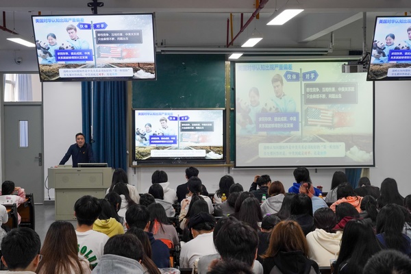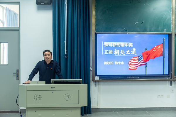 课堂上,林土水副校长从“中美关系历经跌宕起伏”“特朗普再度执政的影响”“解好中美关系的必答题”三个方面阐述了新时代中美双边关系的重要性以及当前面临的挑战等内容,引导学生思考国际关系中的重要议题,培养学生的国际视野与政治素养。课程内容丰富多样,大量鲜活案例穿插其中,既有理论深度,又紧密联系实际,为同学们理解国际关系提供了有力指引。