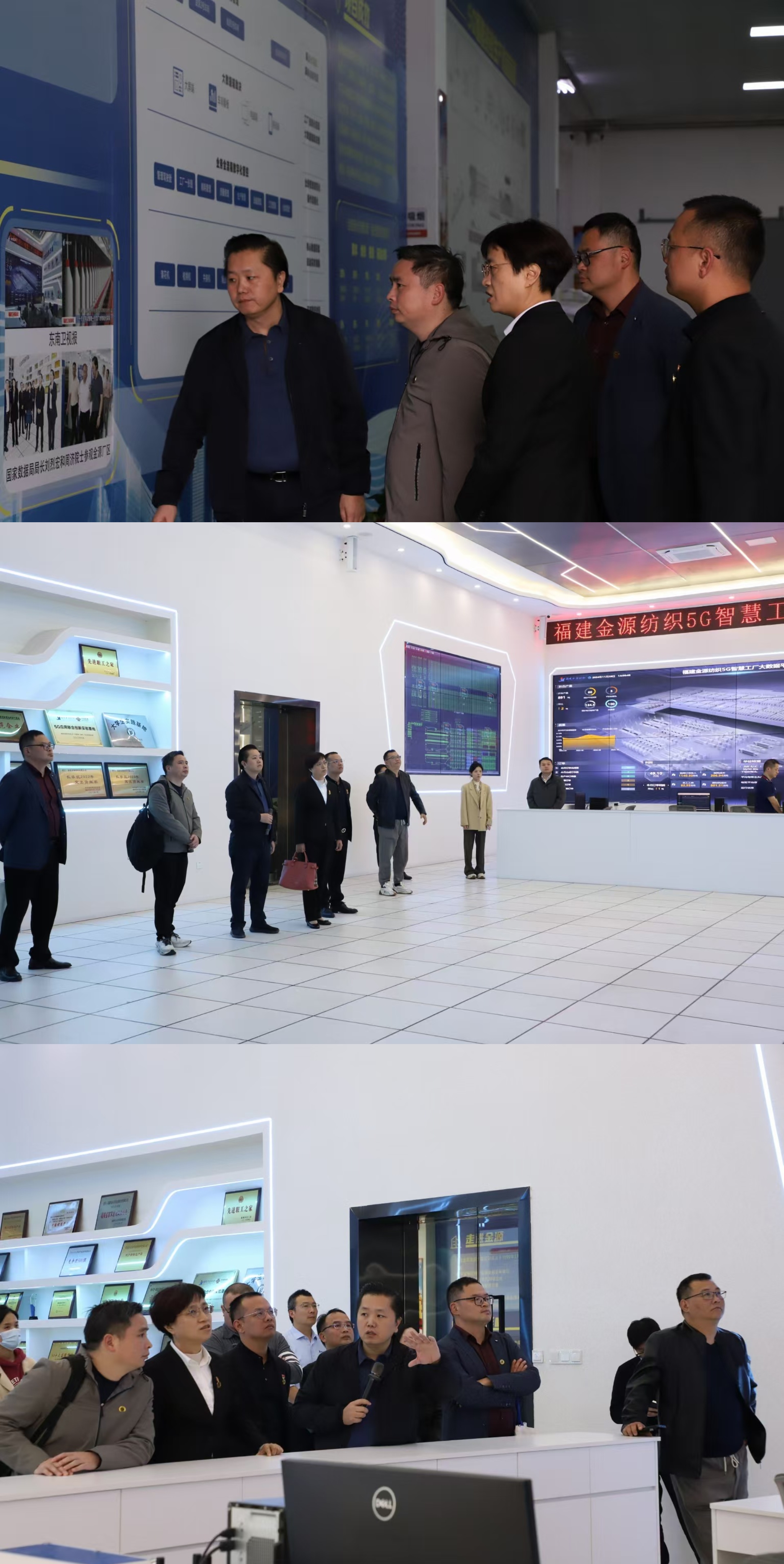 我校林莺书记一行在福建省人大代表、福建金源纺织有限公司董事长郑洪的带领下近距离参观了企业的5G智慧工厂大数据平台,详细了解了企业的数字化管理应用能力和企业文化。