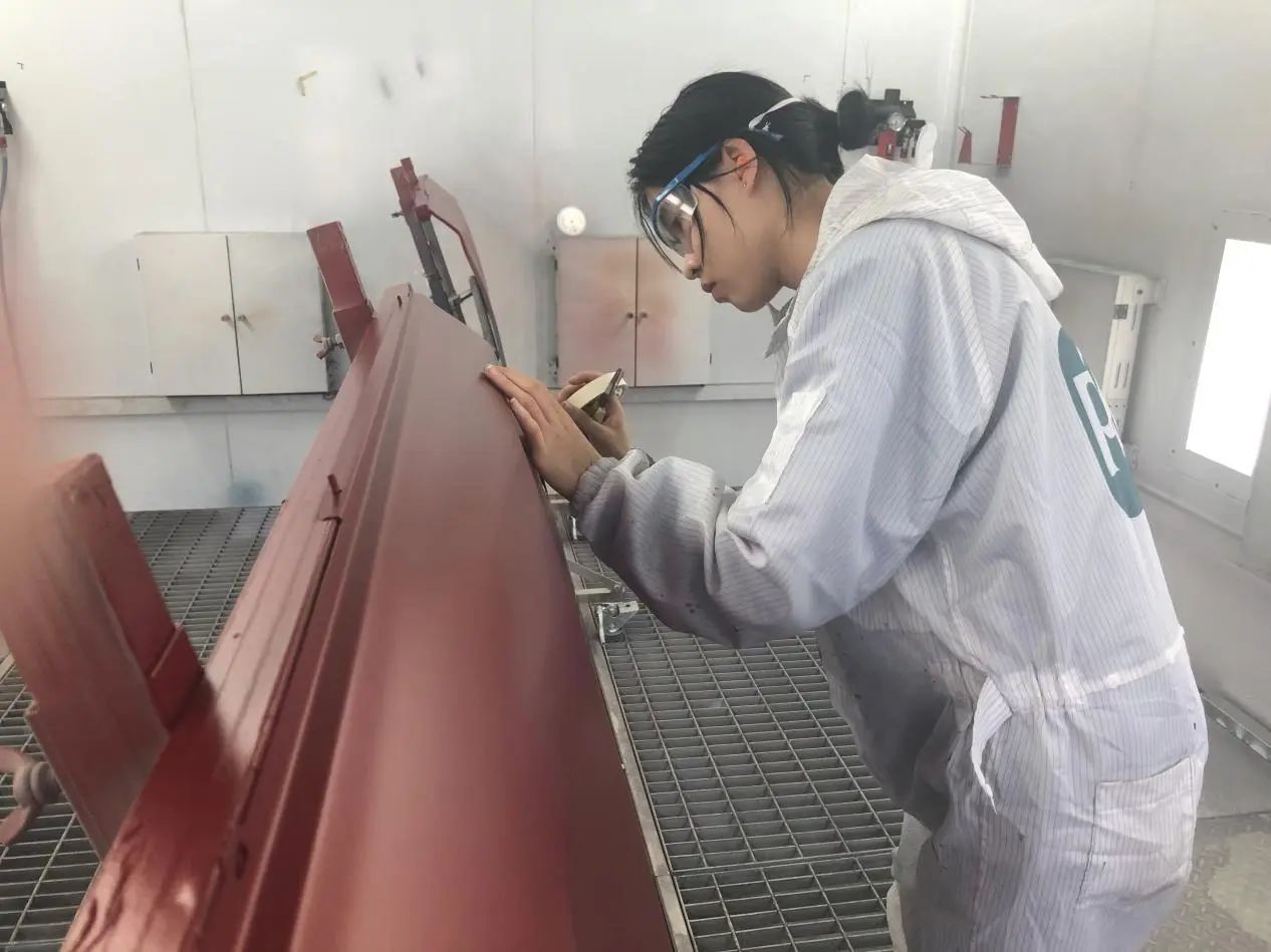 汽车涂装工艺是一项手艺活,不仅需要系统的理论知识学习,更需要反复练习“手上功夫”。在最开始的原子灰搅拌过程,她花了三周时间才得到指导老师的认可。靠着一股不服输的劲,黄文慧成了参赛团队里唯一的女选手。
