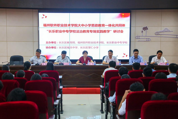 为贯彻落实习近平总书记近日对学校思政课建设作出重要指示精神,进一步推进大中小学思政课一体化建设,6月17日,一场以法治教育创新实践为主题的大中小学思政课一体化“联学·联教·联研”活动在长乐职业中专学校举行。福州软件职业技术学院党委书记林莺、副校长李运良,长乐区教育局思政体艺科科长陈治顺,长乐职业中专学校书记郑德煌、副校长黄挺,网龙普天教育科技有限公司商务总监张庆安等领导,以及长乐职业中专学校、长乐区城关中学、长乐区里仁小学、福州软件职业技术学院马克思主义学院及党委办公室相关负责人、骨干教师参加了活动。