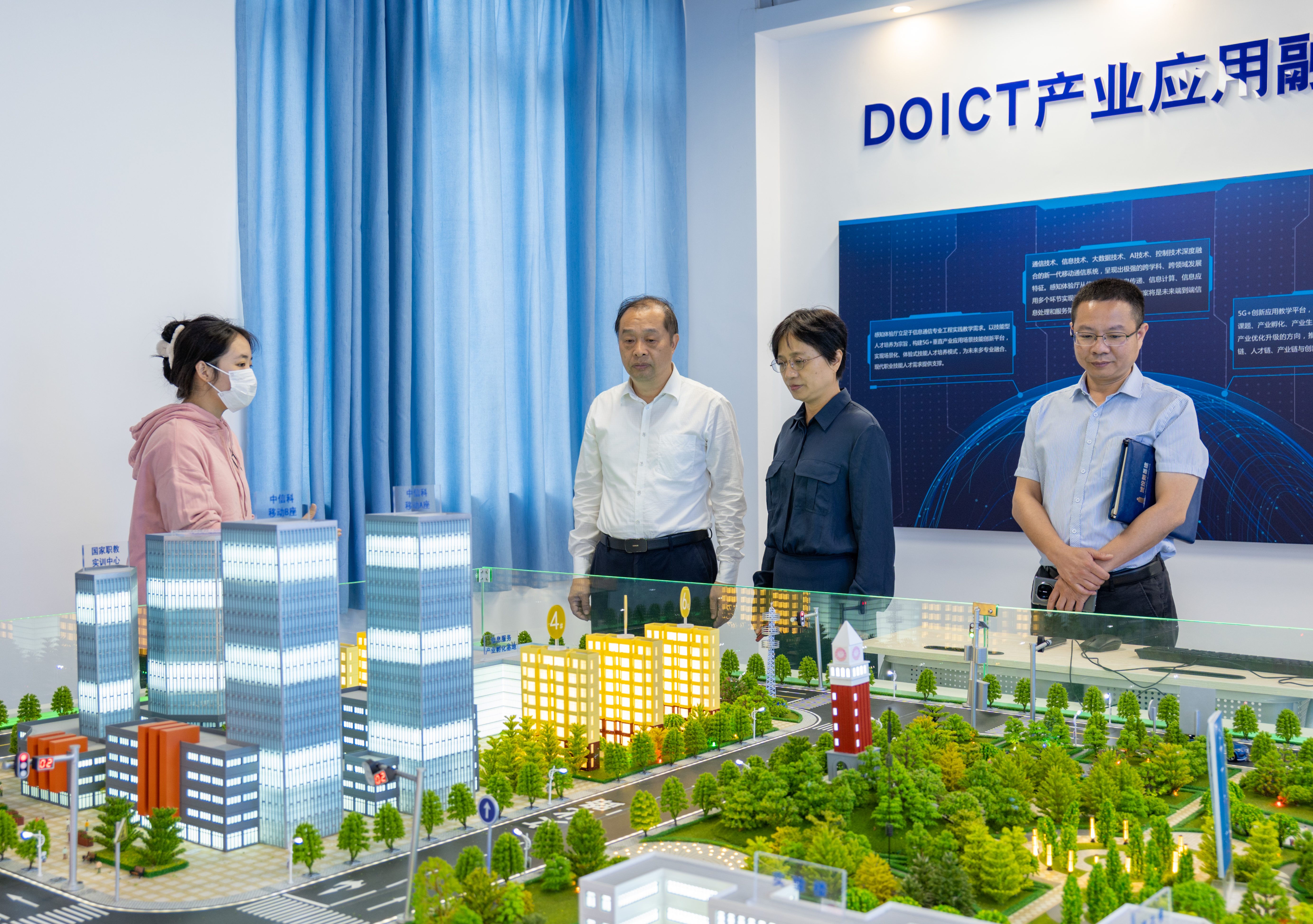 同时,学校党政及相关部门领导陪同福州城投集团领导一行先后参观了学校图书馆、VR智慧教室、孔春霞剪纸工作室、容艺影视产业学院实训室、现代通信产业学院实训室及电子竞技实训室等,并就我校办学理念、办学情况、信息化数字化教学配套设施建设作了详实介绍。