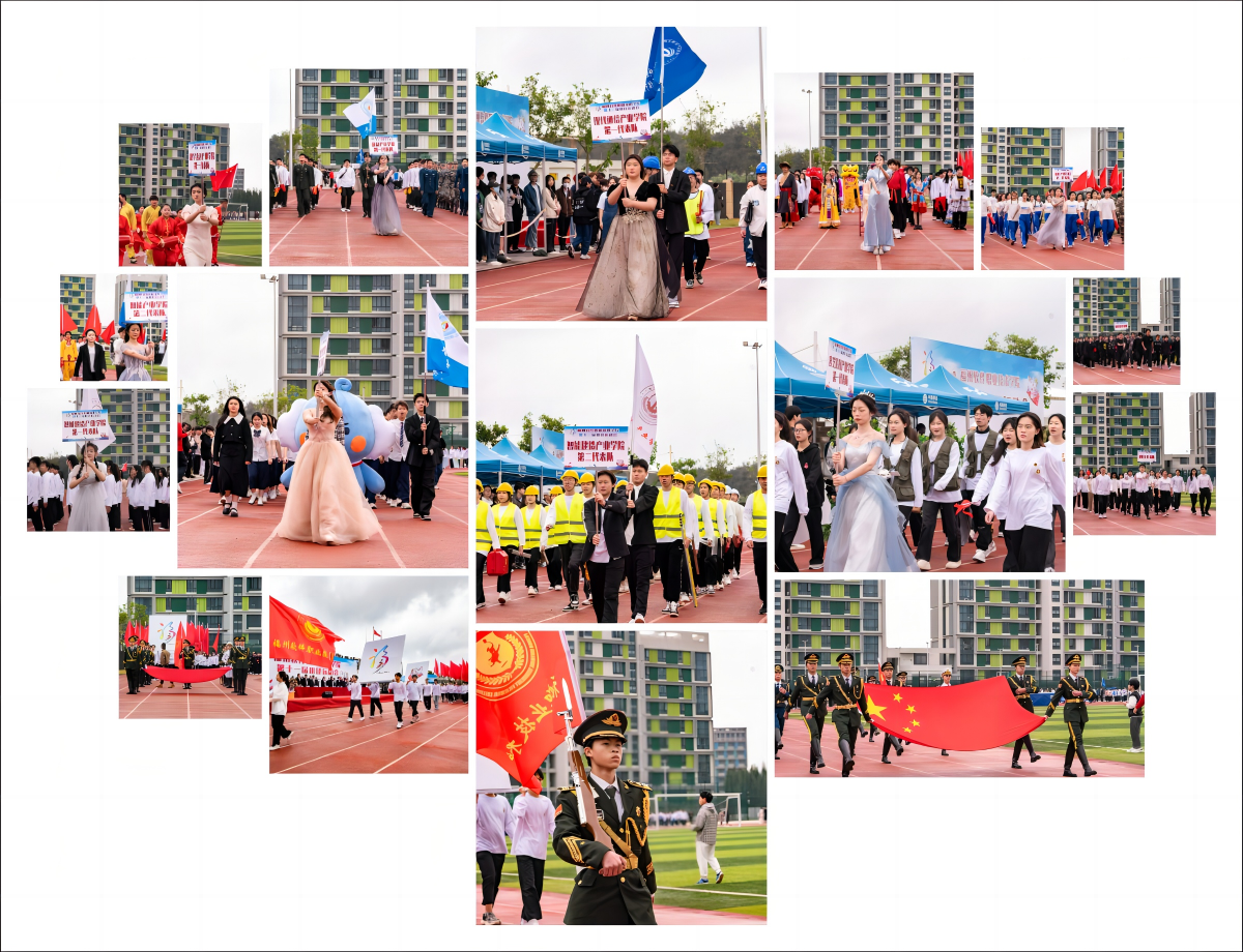 护旗入场,队员们手举国旗,步伐庄严,一丝不苟,充分体现了福州软件职业技术学院“厚德笃行 励学强技”的校训文化。各单位运动员方队等依次入场,方阵步伐整齐、口号响亮、不畏风雨,昂首阔步走入赛场,充分展现了学校师生精神饱满积极向上的风采。