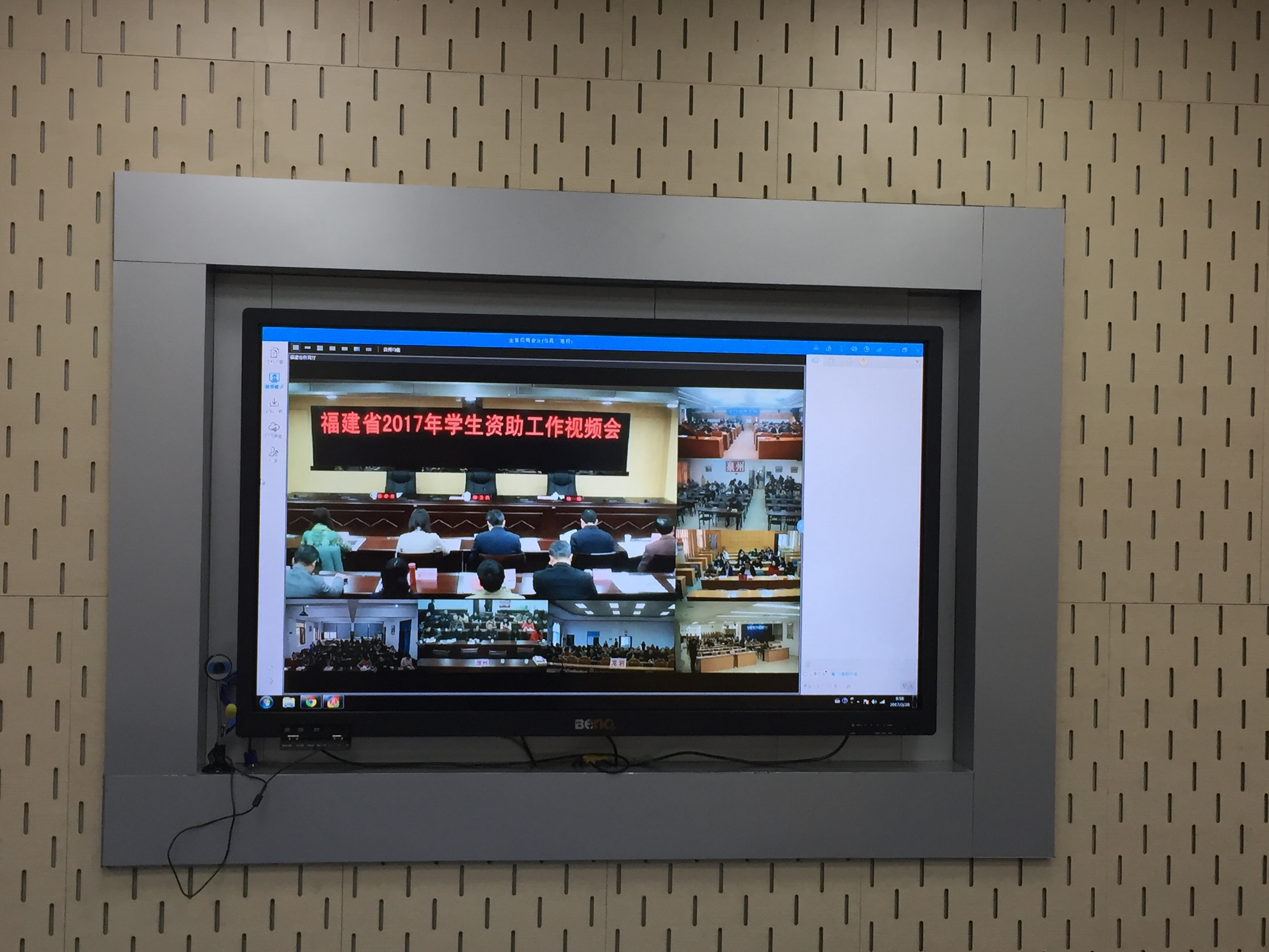 2017年2月28日上午9:00,学院党委洪志群副书记,学生处刘建华处长、柯建琳副处长,各系(科室)负责人及全体辅导员在学院A区教学楼未来教室,参加全省学生资助工作视频会议。