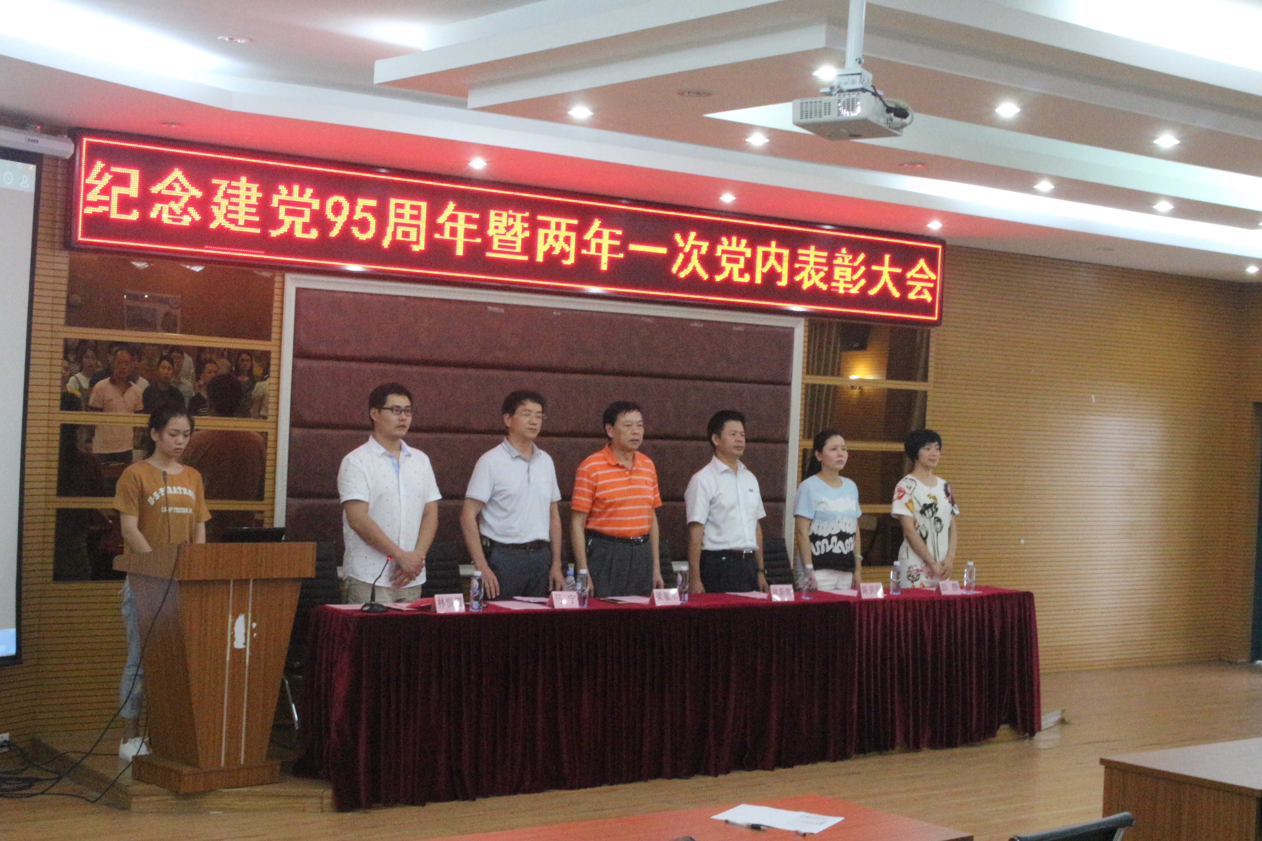 6月30日下午,福州软件职业技术学院在学院报告厅隆重举行纪念建党95周年暨两年一次党内表彰大会,出席本次大会的有市教育工委“两学一做”督导组负责人、副调研员梁敬水同志,督导组成员马宁同志,陈美玲同志,学院党委书记、党校校长林新辉同志,学院党委委员、管理系副主任彭静同志,学院党委委员、学生处处长林憬耀同志以及全体教职工党员,非毕业班学生党员。