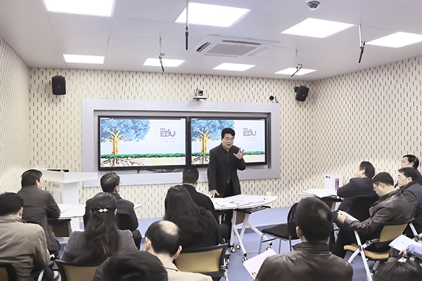 在未来实训室,严星副局长首先向与会人员介绍了学院信息化建设的一些情况。严副局长说:“福州软件职业技术学院校园信息化建设是福建省的标杆,今天借此机会,咱们齐聚福软,来见识下现代教育的新模式,比对下我们目前教育与现代教育存在的差距。”随后,任直副院长以互联网+职业教育生态云解决方案的演讲,向大家介绍了教育先生产品如何在校园信息化建设中的应用和实施。