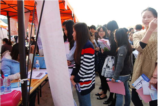 2014年11月18日下午,学院就业指导中心在排球场举办“2015届毕业生供需见面会”。本场招聘会共吸引了网龙集团、盛辉物流集团、中海创集团