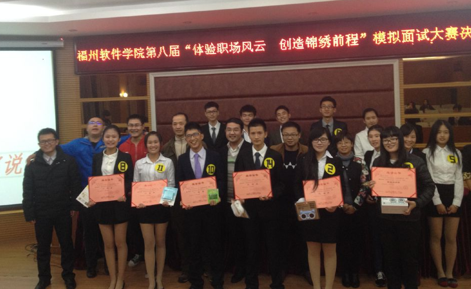 2014年12月4日,由学院就业指导中心主办,企业管理协会承办的第八届就业指导月“体验职场风云,创造锦绣前程”模拟面试大赛在院报告厅圆满落下帷幕。此项比赛自2007年举办以来,已成功举办八届。