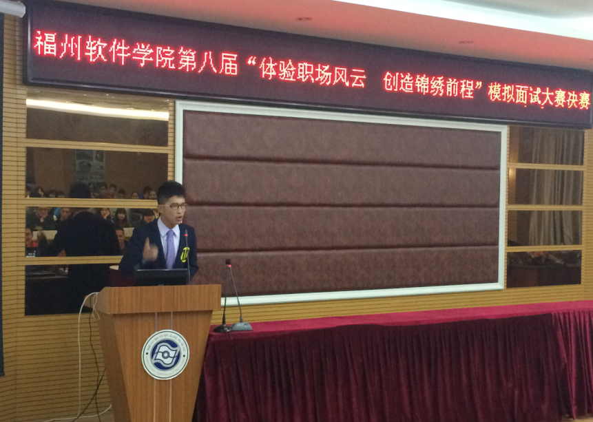 本届大赛以“体验职场风云,创造锦绣前程”为主题,特别邀请到学校党委副书记、学生处处长洪志群老师、团委书记林憬耀老师、年级事务部主任叶镇国、魏丽静老师、团委副书记林艺勇老师、党政办秘书李川老师以及2014级计算机系辅导员陈阳老师担任评委,使比赛更具专业性、真实性。本次大赛广泛宣传,精心组织,经过初赛、复赛的层层筛选,最终15名同学脱颖而出进入决赛。
