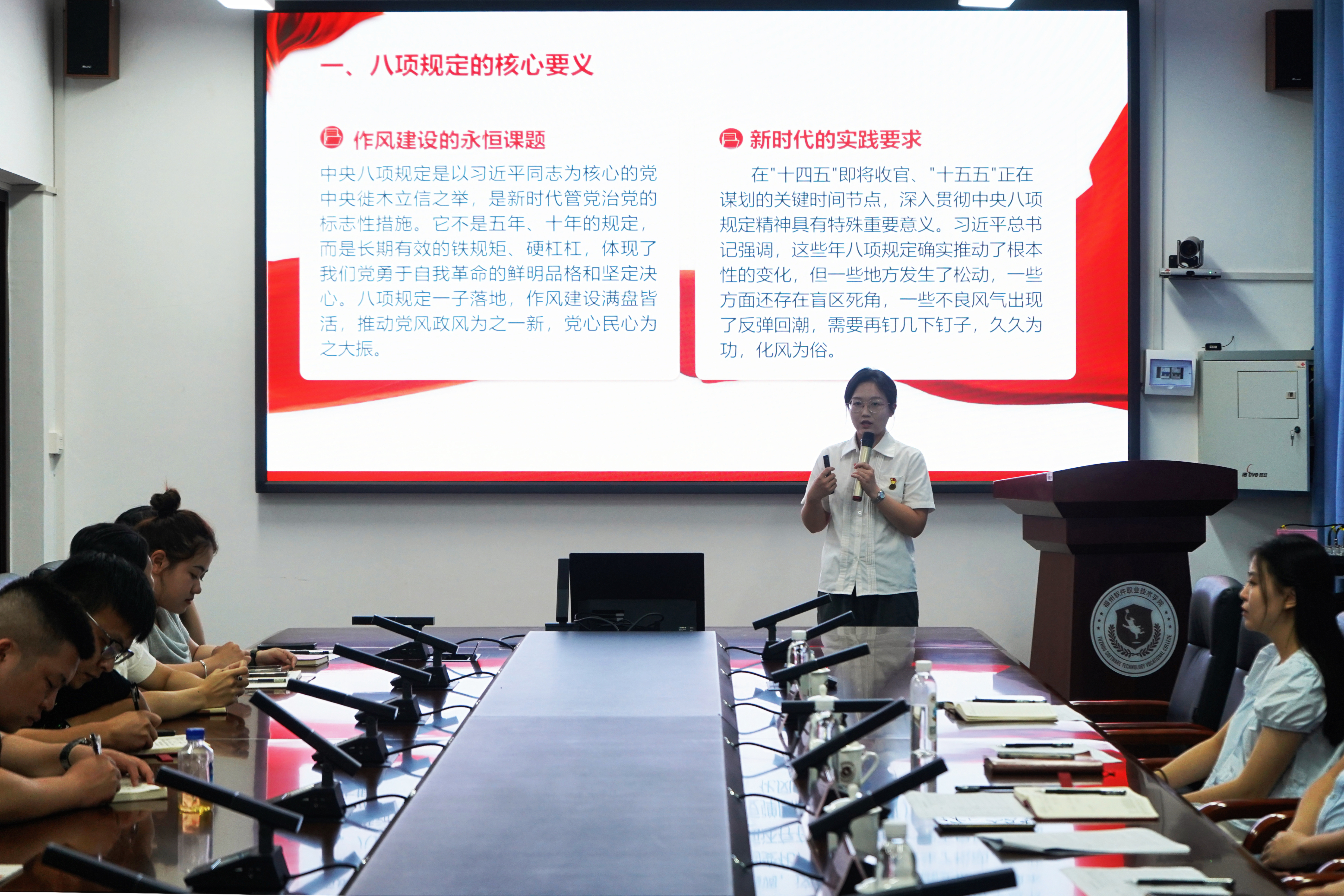 为深入贯彻中央八项规定精神学习教育,全面落实党的二十大和二十届二中、三中全会精神,坚守立德树人根本任务,推动党建与业务深度融合、双向促进,10月15日,我校于行政楼208隆重举办第二届基层党务干部职业能力大赛暨微党课宣讲大赛。学校党委书记马勇,党委副书记林艺勇,党政办公室主任郑凯源,党委组织部(党委宣传部、党委统战部)副部长(主持工作)卓白云、副部长黄雪,马克思主义学院思想道德与法治教研室主任陈剑玉担任本次比赛的评委,各二级学院党总支书记、党总支副书记、党支部书记及参赛团队观看比赛。