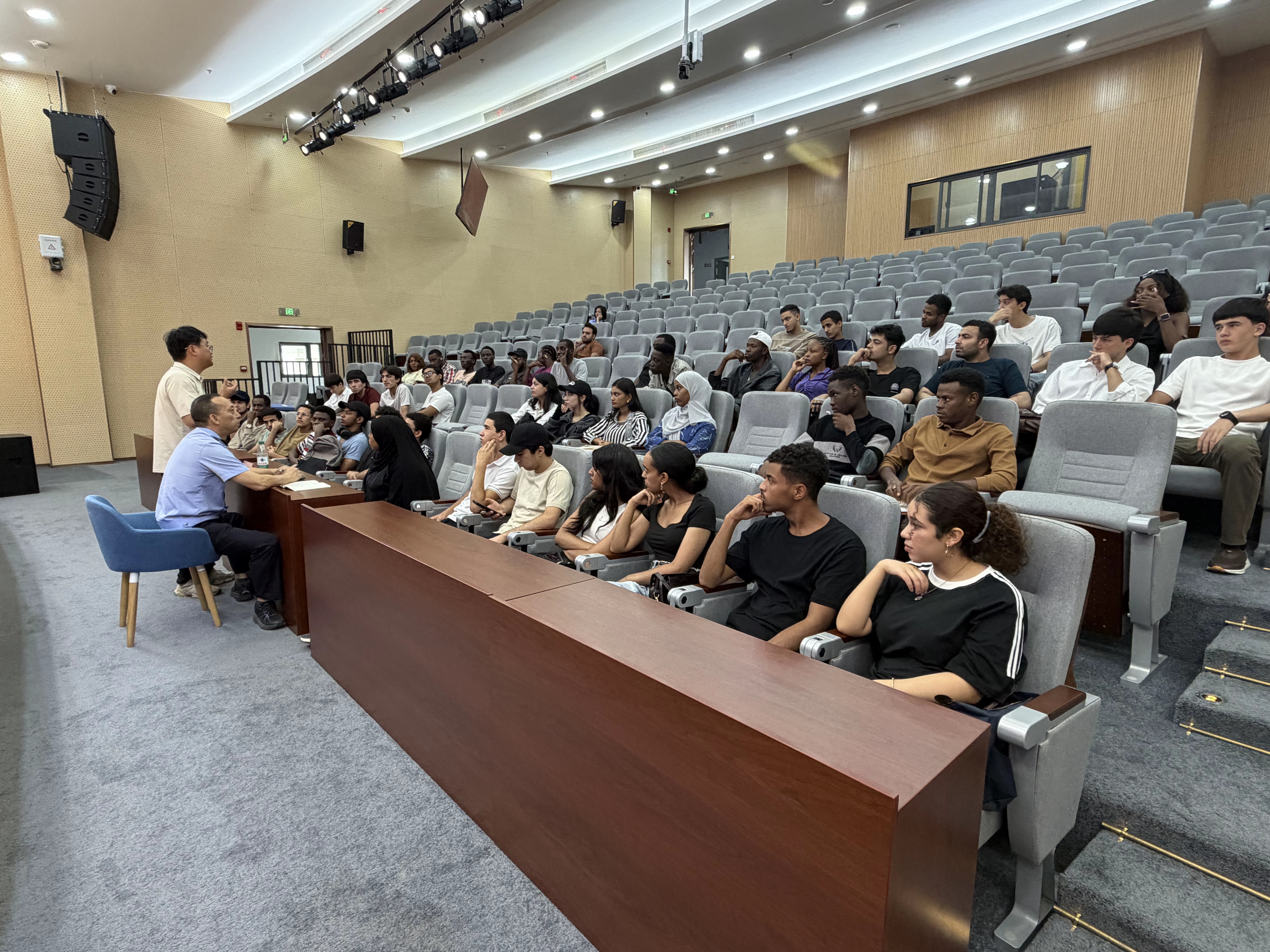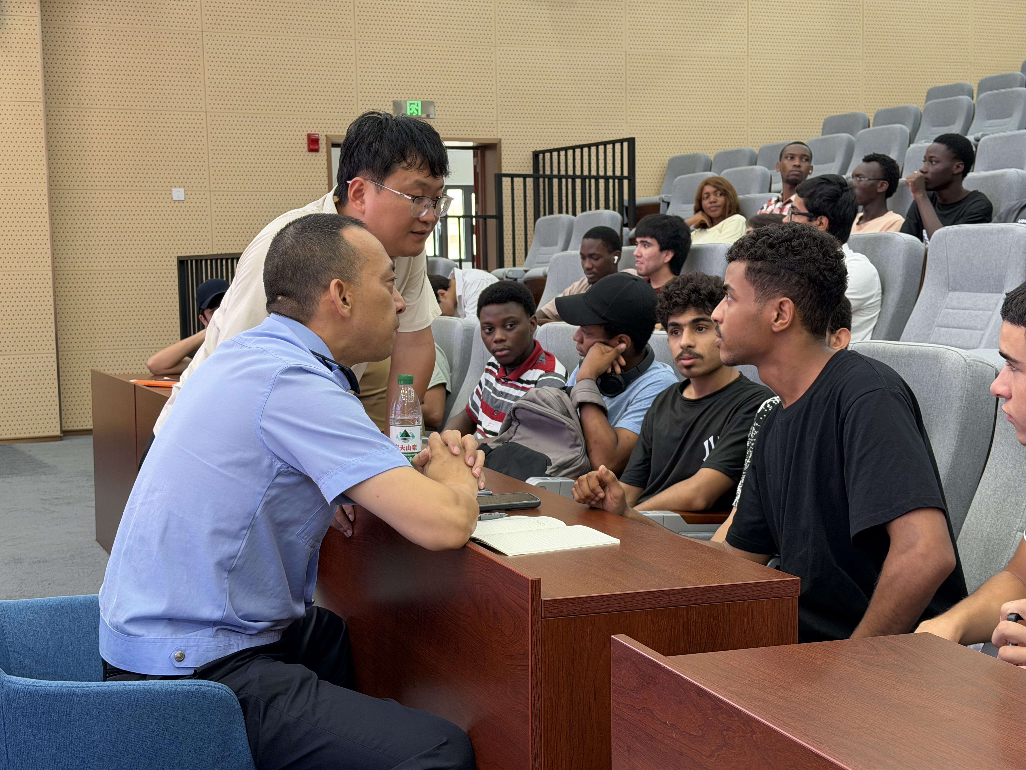 2025 年10月16日上午,我校国际学院特邀福州市公安局长乐分局出入境管理大队林文贵警官莅校开展宣讲活动,为来自21个国家的国际语言生精准解答出入境相关疑问,助力学子安心求学。国际学院相关负责老师及全体国际语言生参加活动。