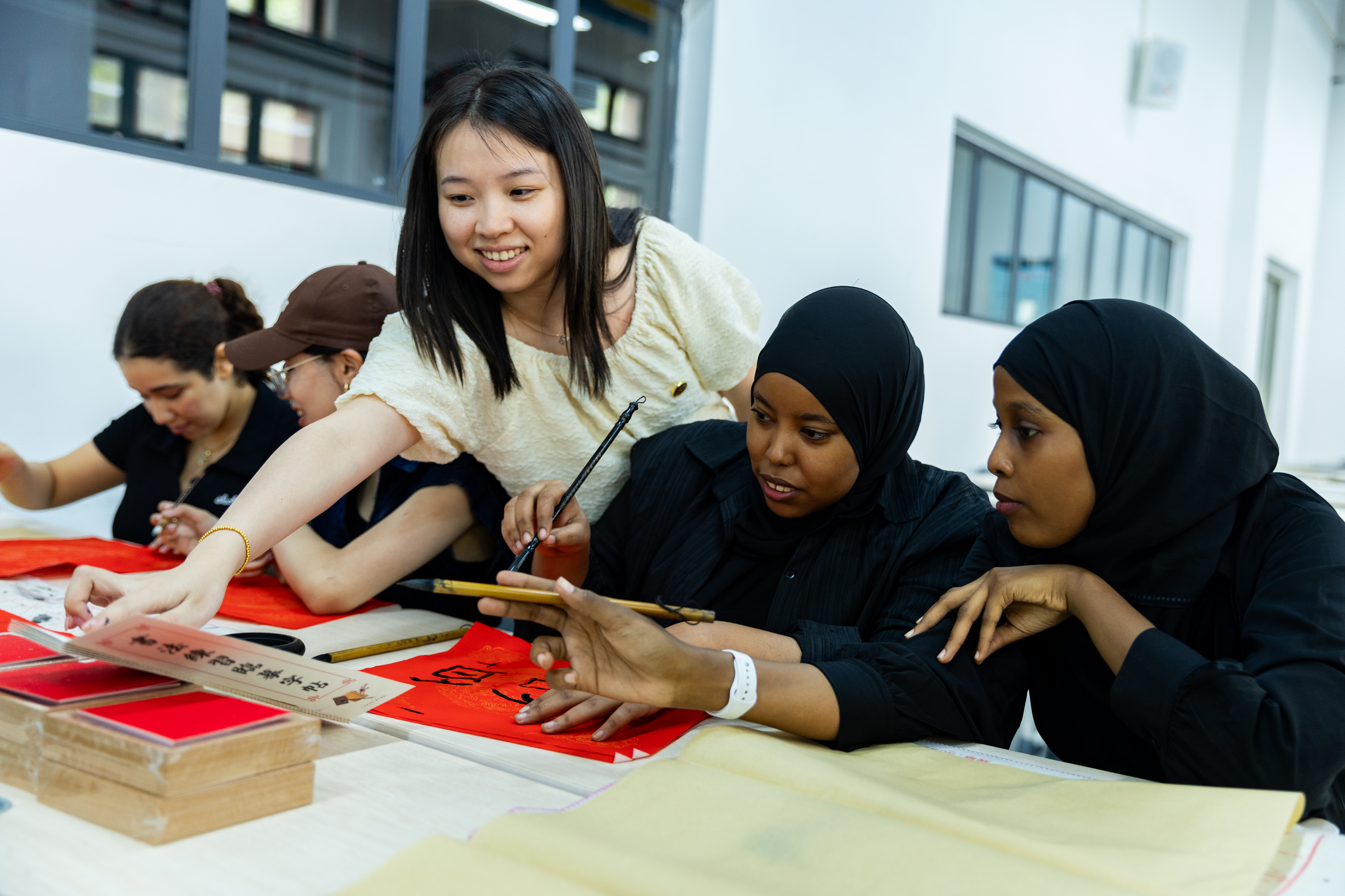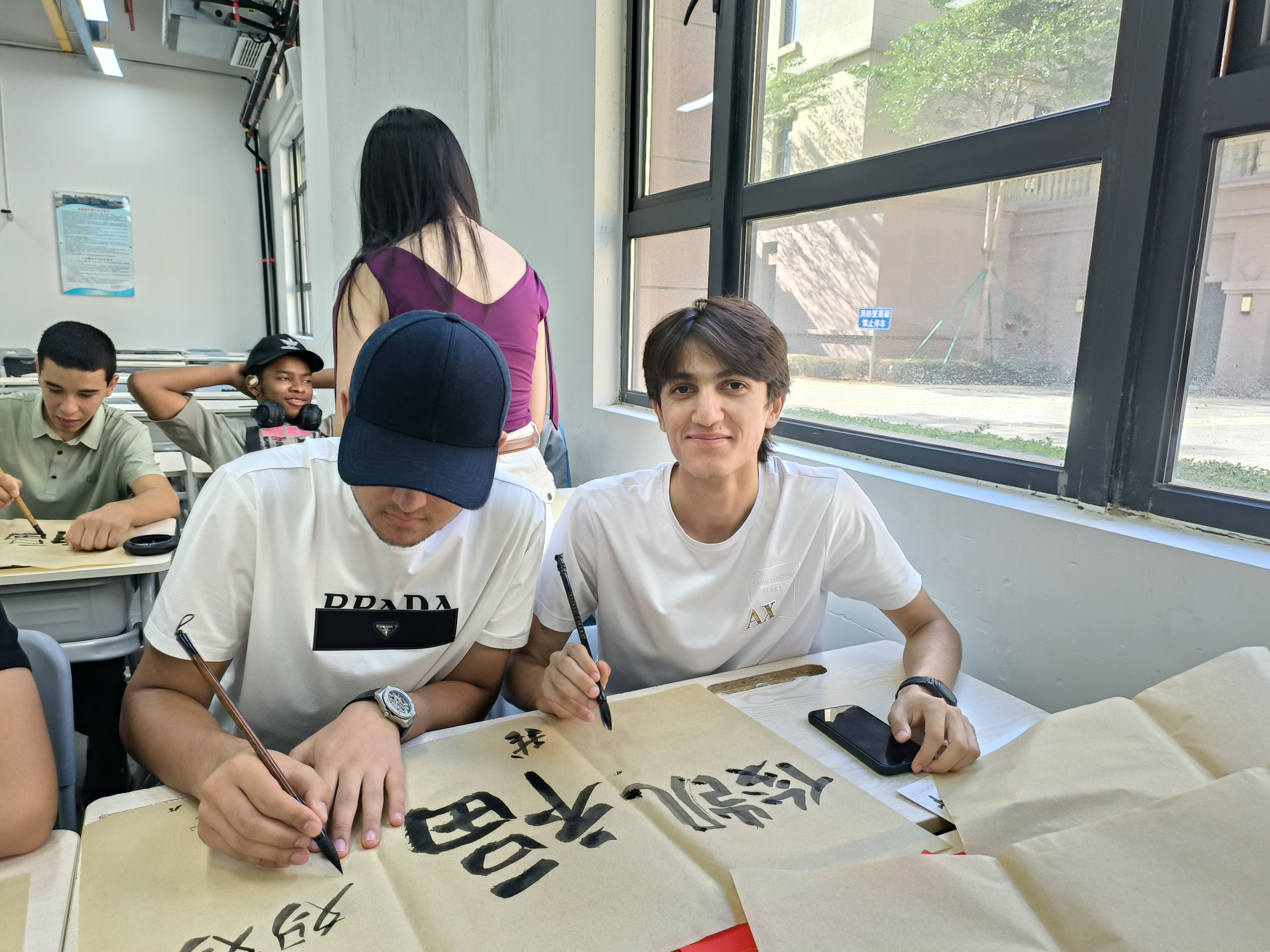 下午,一场充满墨香的书法体验活动在F106教室吸引了众多中外学子的目光。国际学院与智能建造产业学院的同学们齐聚一堂,在专业老师的指导下,从执笔、运笔到基本笔画,亲身感受中国书法的独特魅力。活动现场气氛热烈,同学们挥毫泼墨,在一笔一划中体会着中华传统文化的博大精深。此次活动不仅为擅长书法的同学提供了展示平台,更促进了不同学院、不同文化背景学生之间的交流与融合,更是推动文化育人、实践育人的一次生动体现。