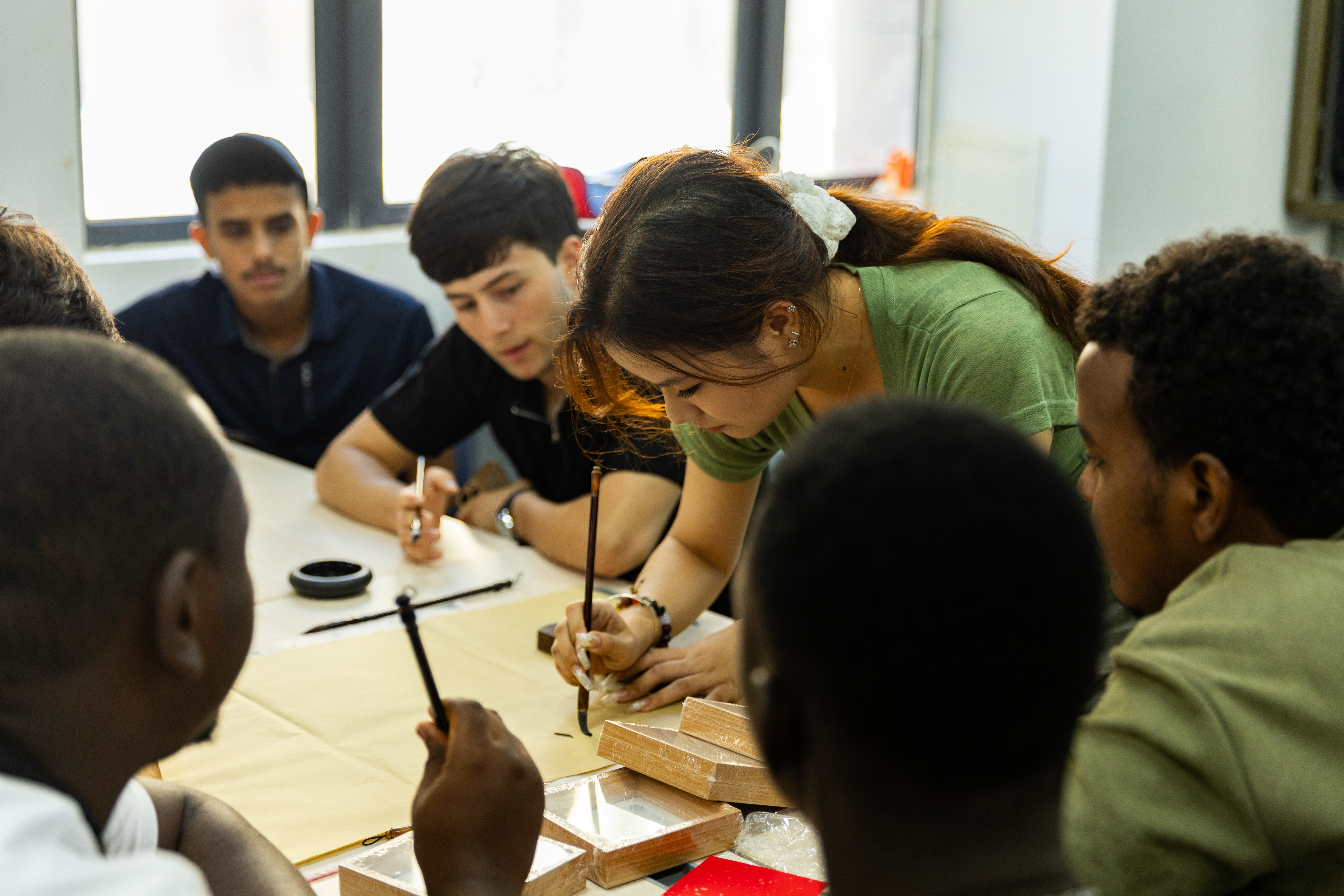 专业老师指导国际语言生练习毛笔书法