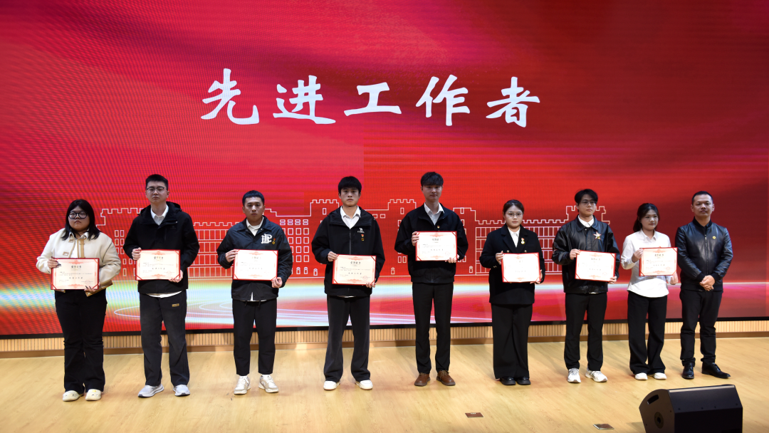 校党委副书记林艺勇、校团委书记王李沙分别为省市级先进个人、校级优秀团队、校级先进工作者、校级先进个人及优秀社会实践报告获奖者颁发荣誉证书。