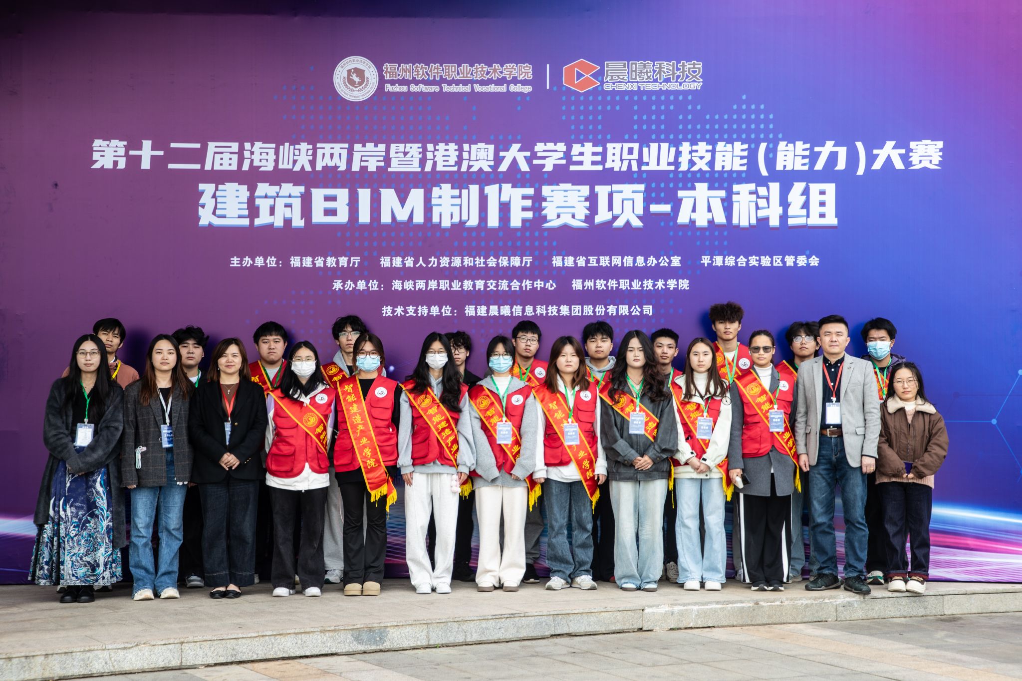 2025年12月7日,第十二届海峡两岸暨港澳大学生职业技能大赛——建筑BIM制作赛项在我校顺利举办。本次大赛由福建省教育厅、福建省人力资源和社会保障厅、福建省互联网信息办公室、平潭综合实验区管理委员会共同主办,海峡两岸职业教育交流合作中心、福州软件职业技术学院承办、福建晨曦信息科技集团股份有限公司协办。赛事共吸引20多所高校及5支台湾暨港澳地区高校组,共计百余名师生同场竞技。