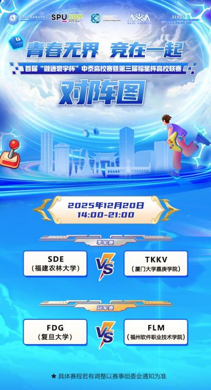 由福建省文化和旅游厅、福州市体育局指导,福州软件职业技术学院、斯巴顿大学(泰国)、文体电竞行业产教融合共同体联合主办的首届“融通寰宇”杯中泰高校赛暨第三届福星杯高校联赛中方赛区总决赛,战鼓即将擂响!