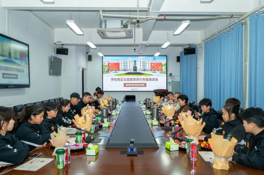 欢迎仪式后,专题座谈会在行政楼 208 会议室召开,由校长助理柯建琳主持。会上,教练与队员代表们分享心声,畅谈感悟,现场氛围温馨而热烈。