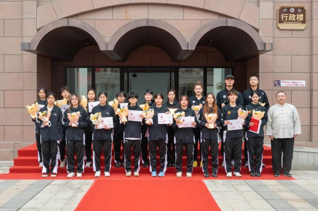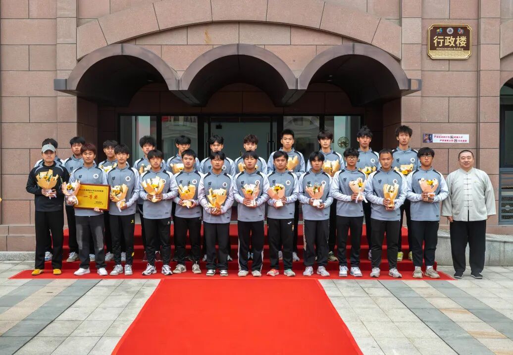 12月12日,行政楼前红毯铺展、拱门矗立,处处洋溢着热烈而庄重的氛围。我校隆重举行男足、女篮载誉荣归欢迎仪式暨专题座谈会,用最高礼遇迎接凯旋的运动健儿们。