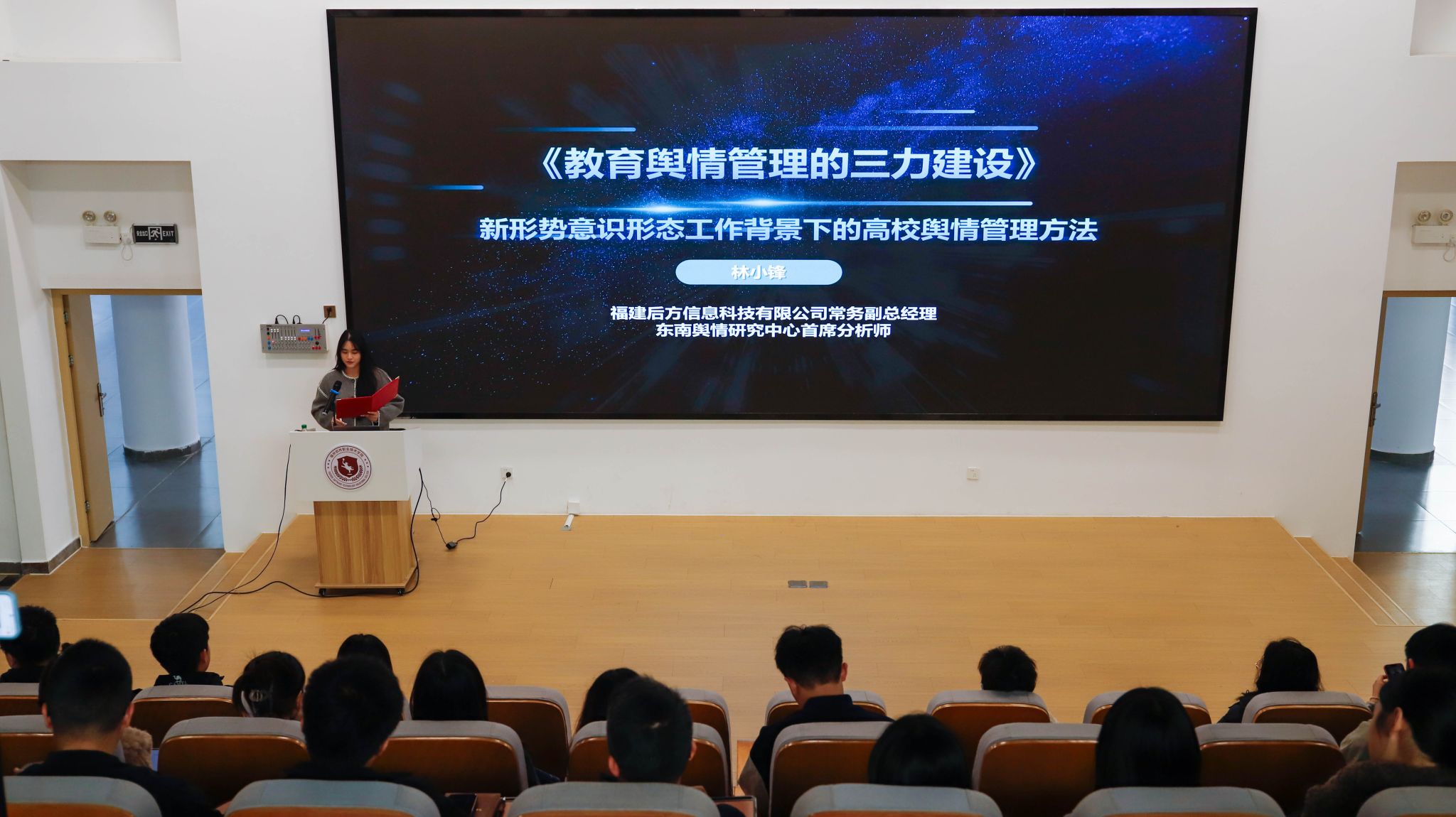 为深入贯彻基层治理现代化建设要求,切实强化基层党组织、学校宣传队伍舆情研判、推演与应急处置能力,筑牢安全稳定工作防线,12月17日,我校在数字报告厅举办舆情推演与应急处置能力提升培训讲座。特邀福建后方信息科技有限公司常务副总经理、东南舆情研究中心首席分析师林小锋授课,各党总支书记、副书记,各党支部书记、全体宣传员、党委组织部(党委宣传部、党委统战部)成员共70人参加。