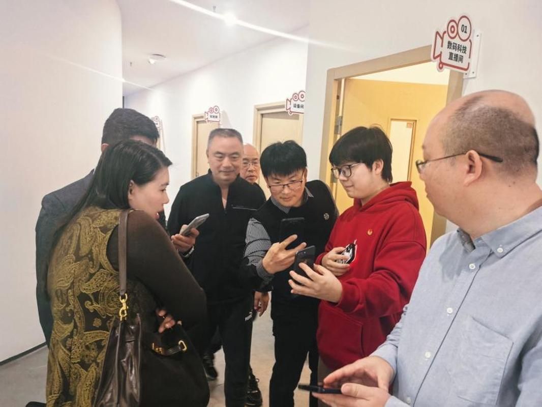 随后,在全媒体直播间,协会一行现场观摩了学生模拟直播实训,对直播间专业的设备配置、标准化的流程设计,以及学生展现出的镜头表现力、产品讲解能力表示赞赏,认为学校的实训培养精准匹配了企业对电商直播人才的需求。