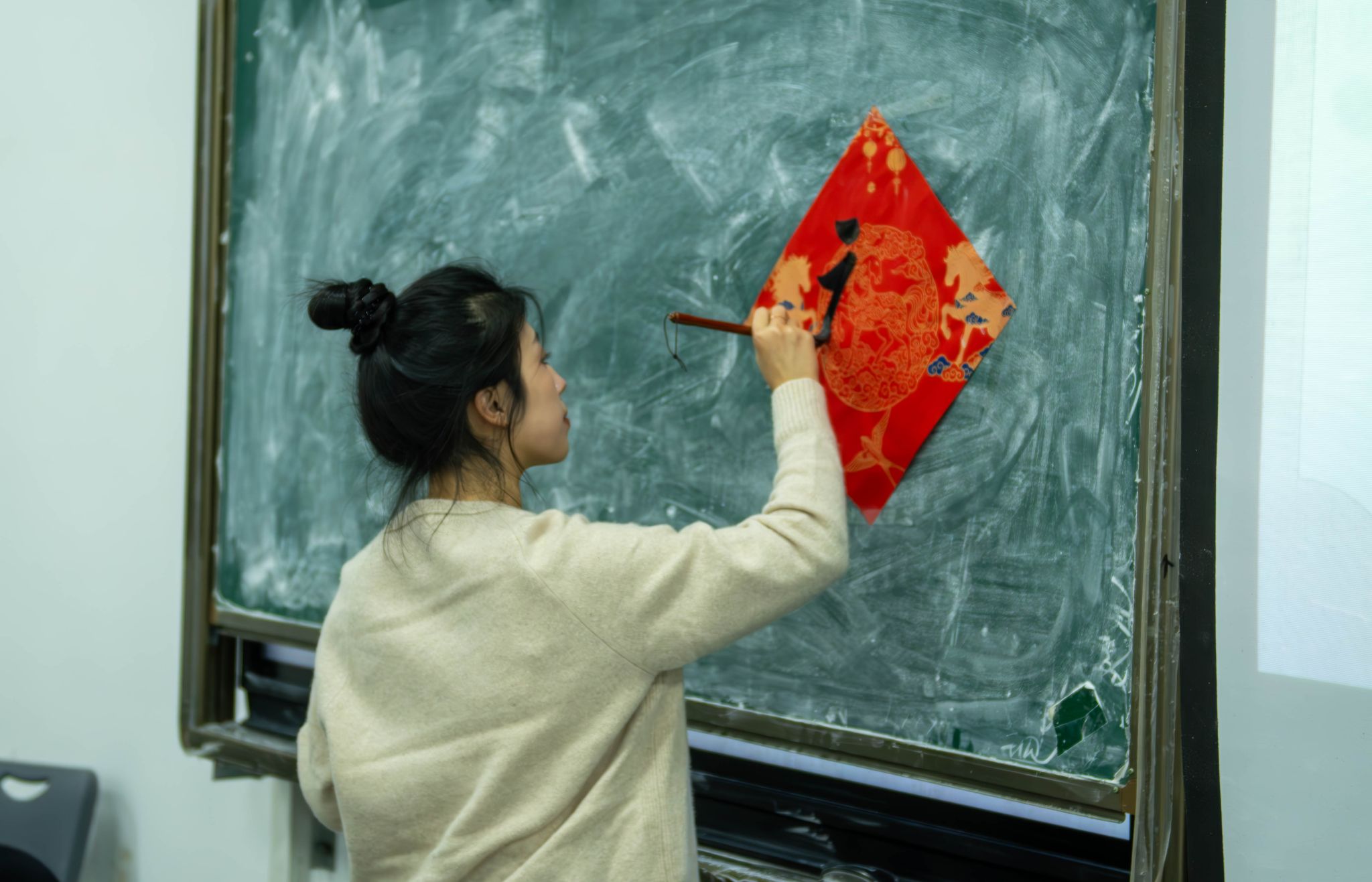 教师示范“福”字书写过程