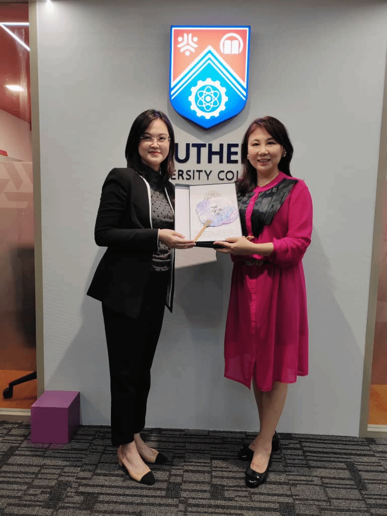 我校向马来西亚南方大学学院副校长梁龙光赠送20周年校庆纪念帽及伴手礼