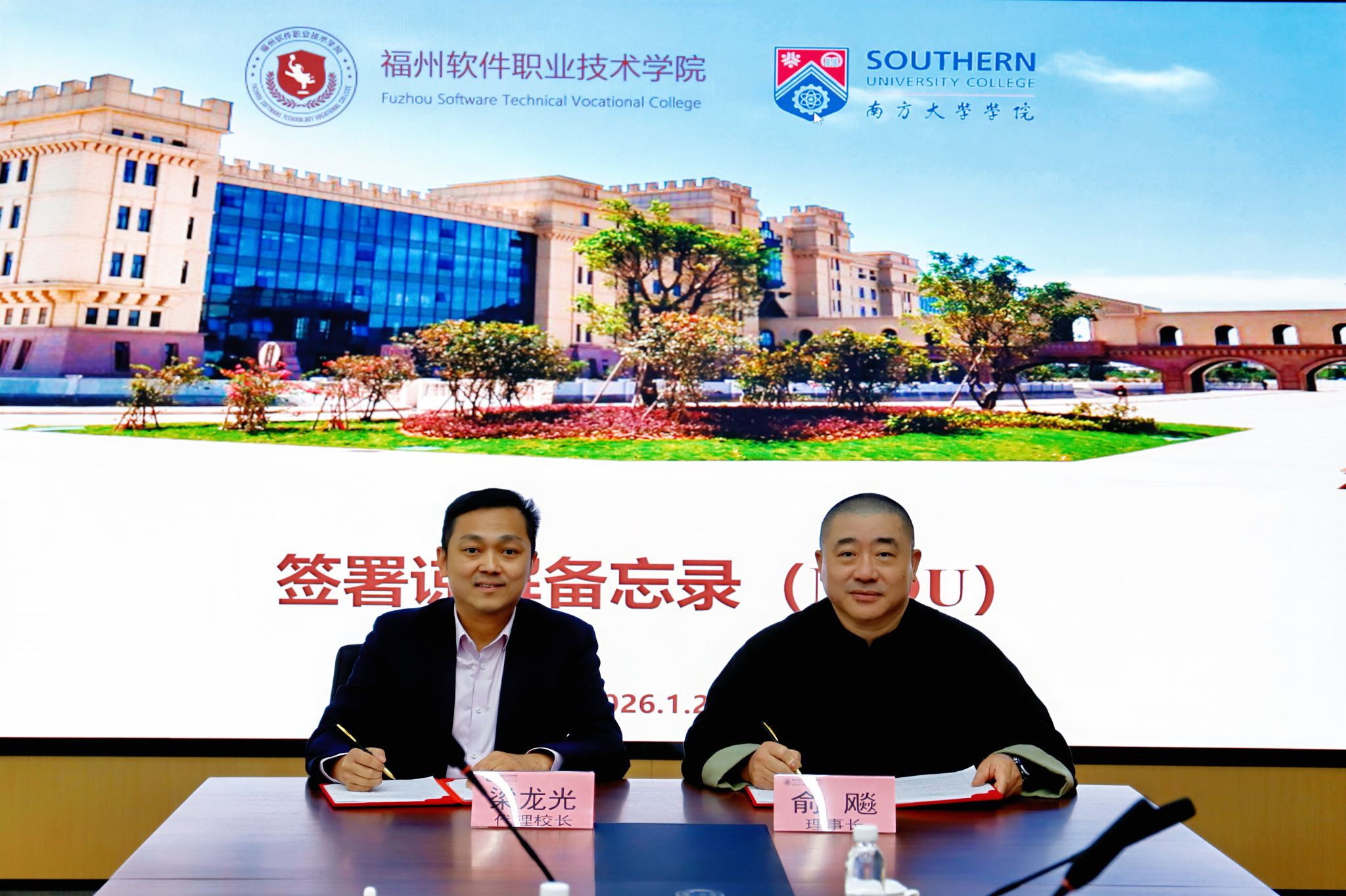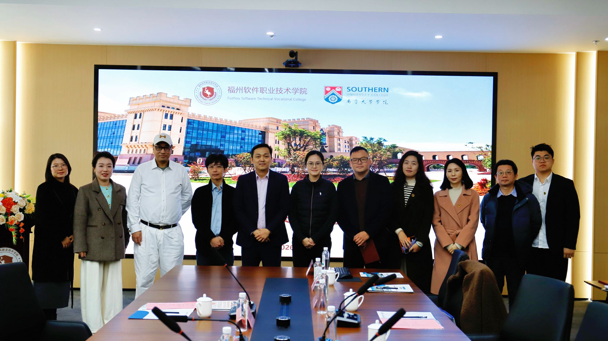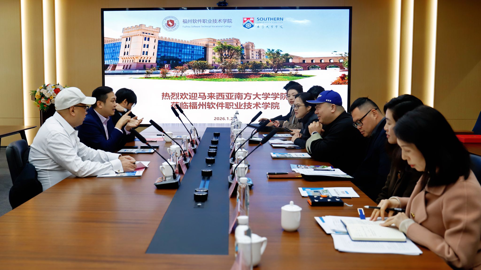 1月23日,马来西亚南方大学学院代表团到访福州软件职业技术学院。代表团通过校园参观、座谈交流等环节,深入了解我校办学特色与实训条件。双方于当日上午正式签署合作备忘录,并围绕课程共建、师资互访等方向开展务实对接,推动合作由“框架共识”迈向“项目落地”。