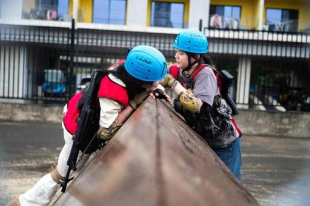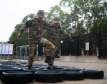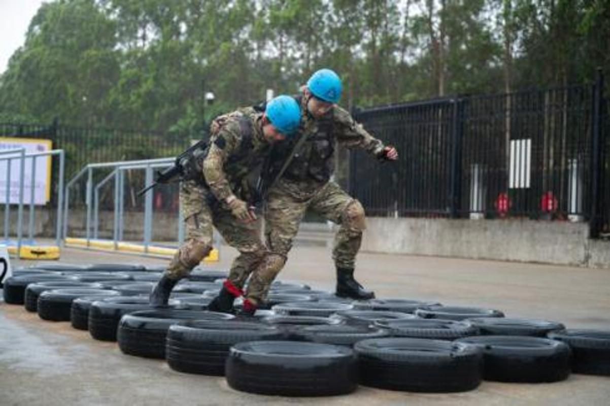 教练带领热身运动及安全讲解后,大家分两组有序体验独木桥、升降物资、射靶心、高空攀爬网等项目。退伍师生主动示范,学生骨干带头尝试,同学们在互助中共同突破。