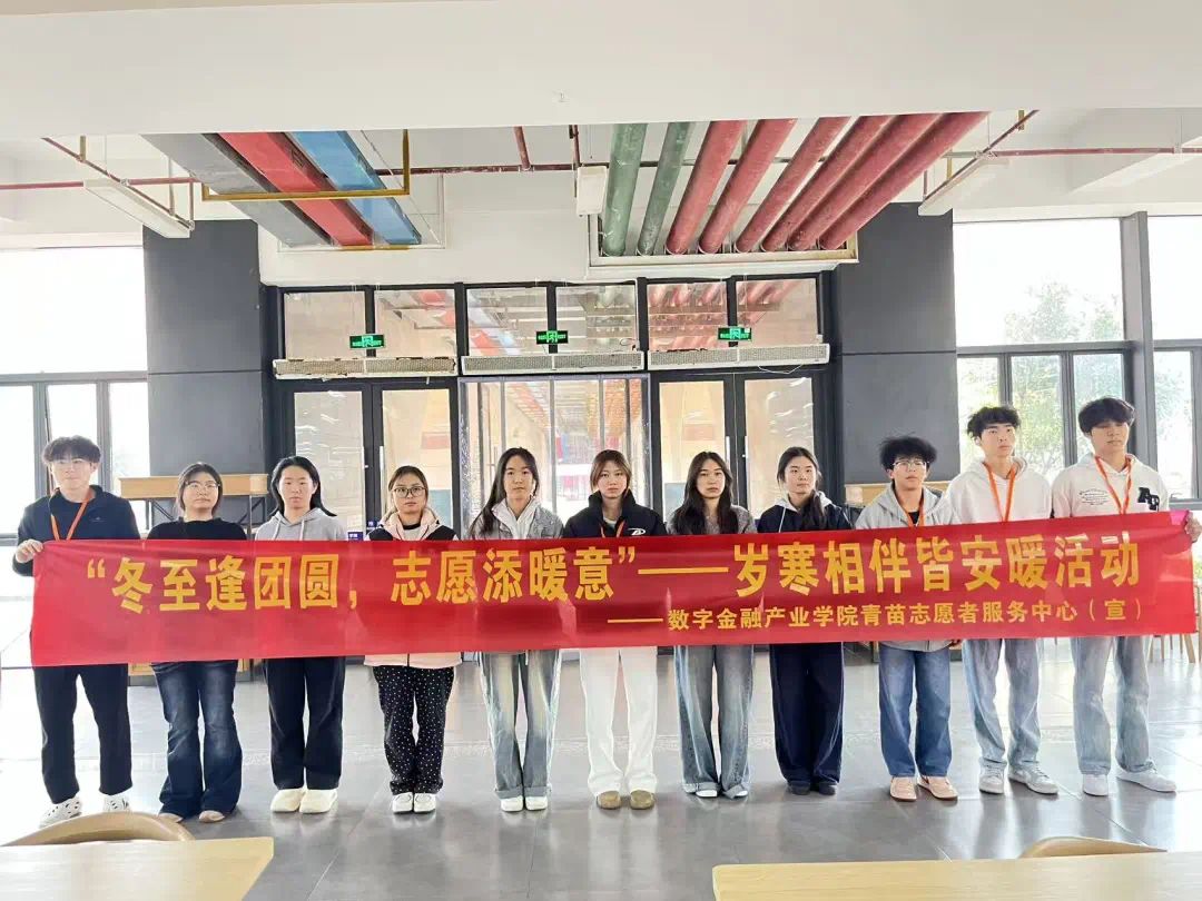 为传承中华民族传统节日文化精髓,增强全体师生的文化自信与集体归属感,营造和谐友爱的校园氛围。2025年12月19日,我校数字金融产业学院青苗志愿者服务中心举办“冬至逢团圆,志愿添暖意”岁寒相伴皆安暖活动,为全体师生送上冬日温暖。