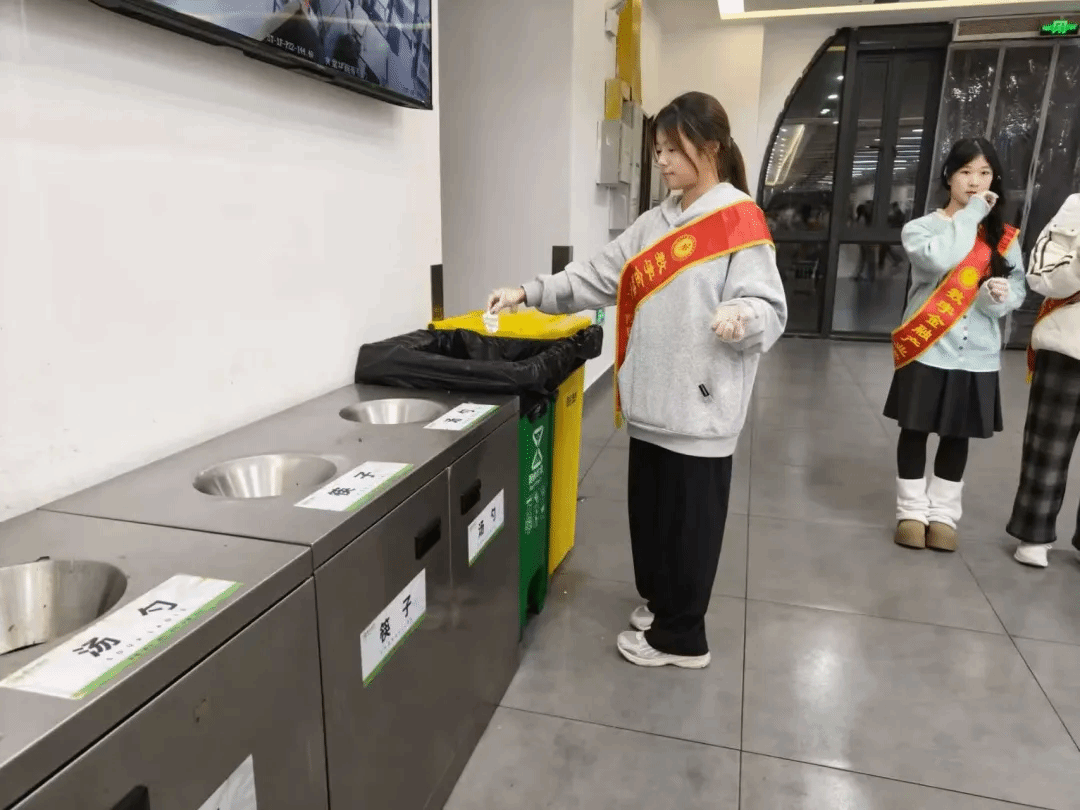 活动中,实践队员恪尽职守,在食堂各个重要区域倡导勤俭节约。餐盘回收点前,他们耐心劝导按需打餐、践行光盘,向剩饭剩菜的同学传递“粒粒皆辛苦”的深刻内涵,以常态化引导的方式让勤俭理念融入日常,推动“节约粮食”从倡议变成习惯。用餐结束时,实践队员们依旧坚守在餐具回收岗位,提醒同学们做好厨余垃圾的分类归置,将餐具整齐摆放到指定区域。他们始终以行动号召珍惜每一粒粮食,落实“光盘行动”,用平凡坚守凝聚起校园餐桌文明的磅礴力量。