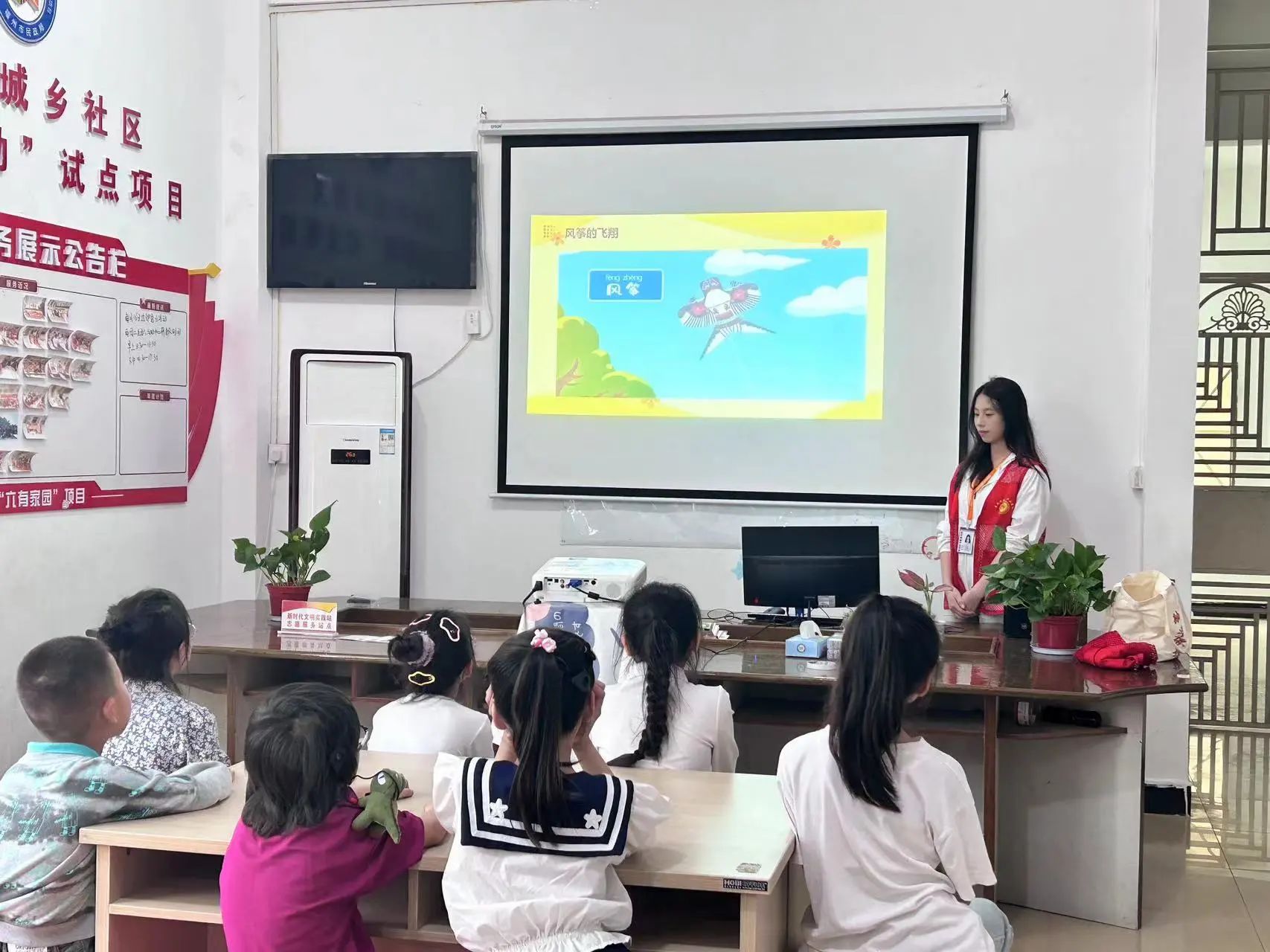 活动伊始,志愿者们为小朋友们讲解关于中国传统文化——风筝的由来,使小朋友们了解风筝的由来、发展史、美好寓意等,让小朋友们明白小小的风筝里面蕴含的中华传统文化和手工制作、绘画等技艺,激发小朋友们的制作兴趣。