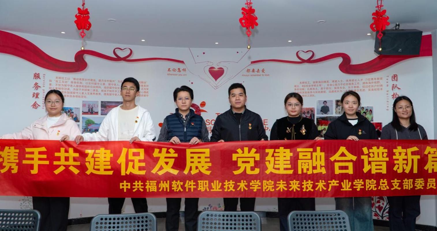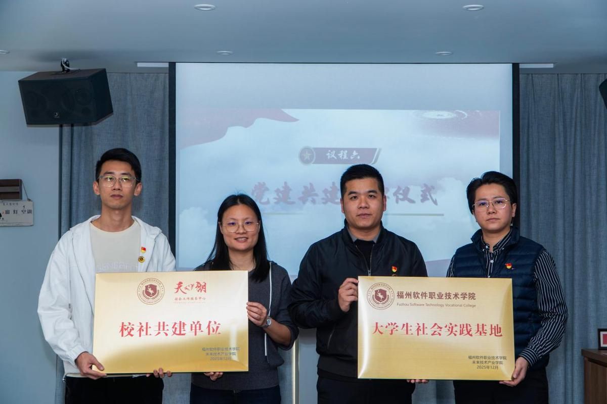 为深化校社党建联动,推动资源融合与协同发展,凝聚育人与服务地方的合力,实现资源互补、共建共赢。中共福州软件职业技术学院未来技术产业学院总支部委员会与福州市长乐区天朗社会工作服务中心党支部战略合作共建签约仪式于2025年12月2日顺利举行。我校未来技术产业学院党总支书记林海、党总支副书记柯林逸炜、分团委书记许玉菁、学生第一党支部书记戴慧贞、学生第二党支部书记陈桂贤,福州市长乐区天朗社会工作服务中心党支部书记曾文婷、行政主管周华参与此次签约仪式。本次会议由未来技术产业学院学生第二党支部书记陈桂贤主持。
