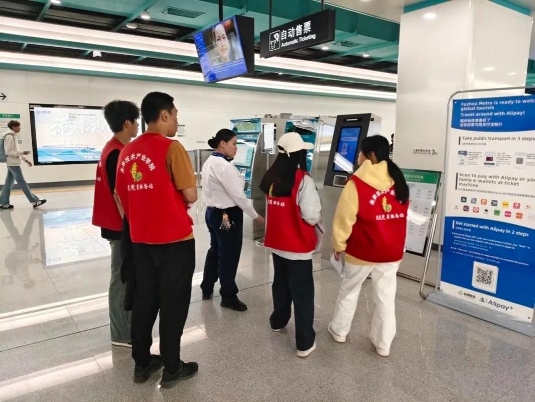 以耐心为桥,畅通民生脉络。11月28日、12月5日,我校先后组织16名志愿者奔赴福州地铁万寿站,开展“青春力量,护航出行”志愿服务。面对每日超5000人次的客流,志愿者们在购票机旁、闸机口前、扶梯两侧各司其职,为乘客提供购票指导、路线咨询、换乘引导等贴心服务。客流高峰时段,他们快速分流人群、提醒安全注意事项,有效防范拥挤踩踏风险;面对老年乘客、外来游客的疑问,他们耐心细致解答,用真诚态度化解出行困惑。从细节处发力,于关键处守护,志愿者们用实际行动疏通公共交通“堵点”,让市民出行更便捷、更安心。