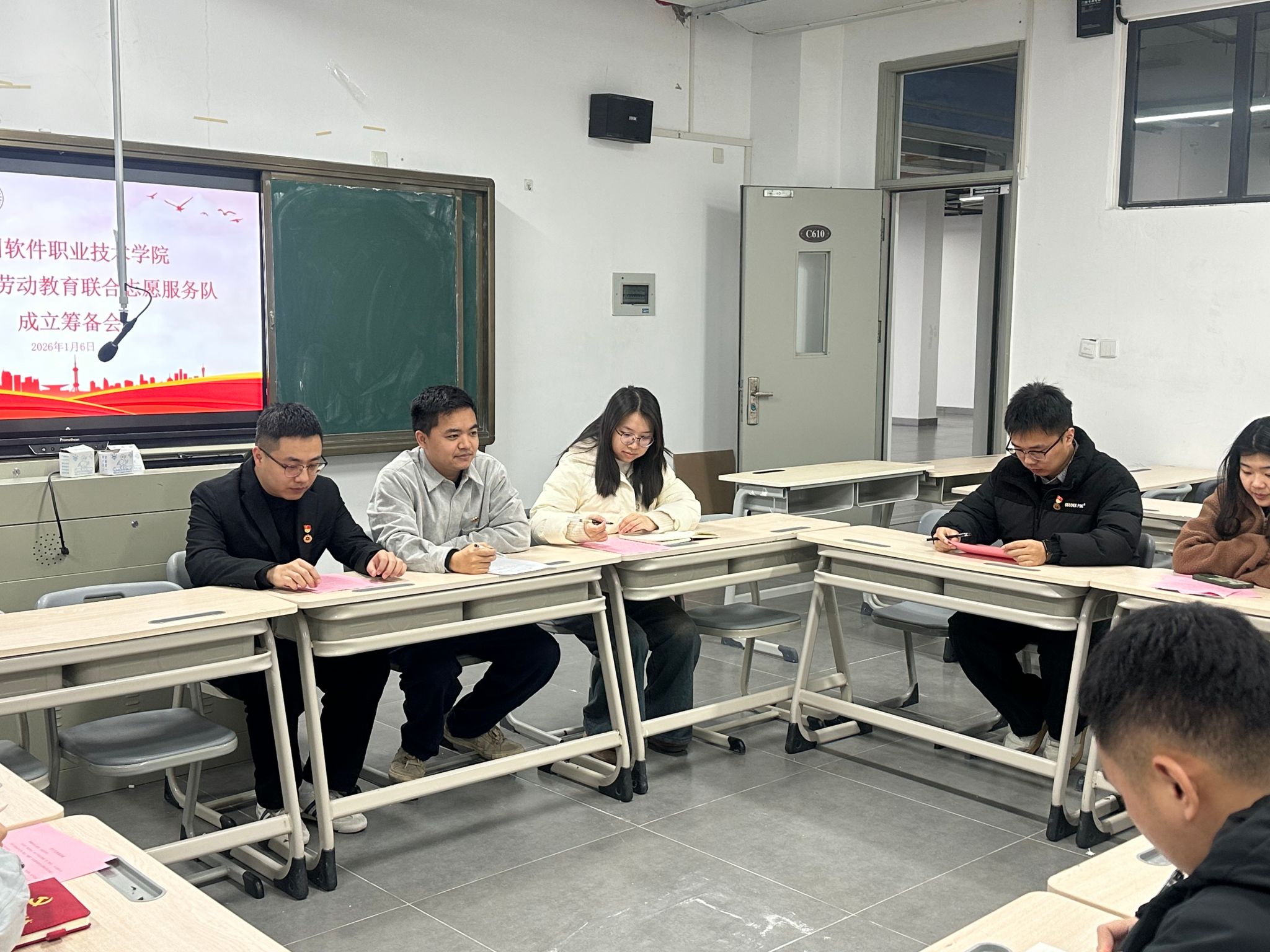 为全面落实立德树人根本任务,积极响应新时代劳动教育育人要求,充分发挥志愿服务的实践育人功能,激发学生自我教育、自我管理、自我服务的内生动力。1月6日,福州软件职业技术学院智能产业学院、智能建造产业学院、数字金融产业学院在教学楼C610召开“趣耕”劳动教育联合志愿服务队成立筹备会,凝聚协同共识,明确服务队建设思路与推进路径,为以劳育心、以劳增智、以劳强能夯实基础。