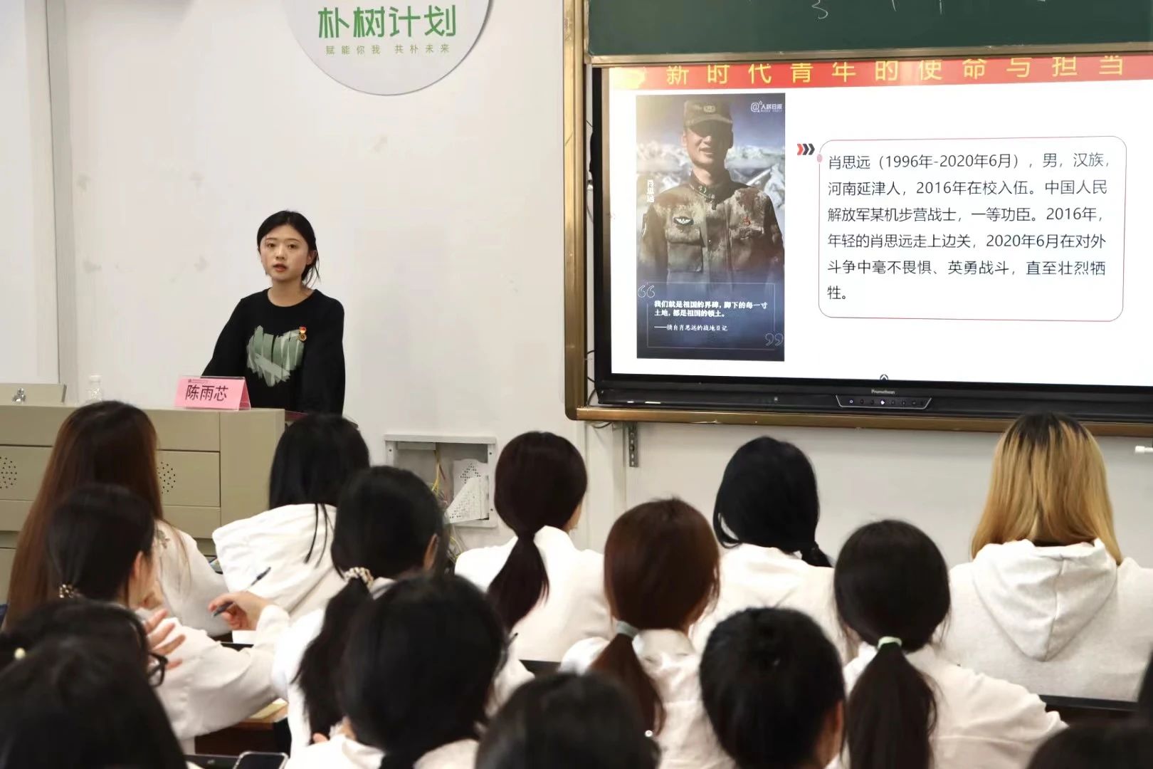 接着,陈雨芯老师通过讲解英雄伟人的事迹及介绍优秀青年的系列的实践活动,从中剖析新时代青年的使命与担当并与学员进行互动、分享经验。进一步引领入团积极分子要厚植爱国主义信念,铸牢信仰之基,补足精神之钙,将个人理想融入时代发展脉搏,将个人价值写进民族复兴征程之中。