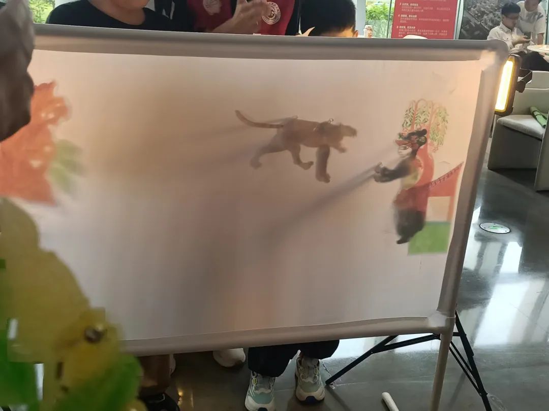 活动现场皮影制作老师向小朋友们详细介绍皮影戏的来源、皮影戏的道具制作、工艺、材质等非遗皮影戏文化内容,并告诉小朋友们什么叫“皮影戏”,激发小朋友们对皮影的浓厚兴趣。