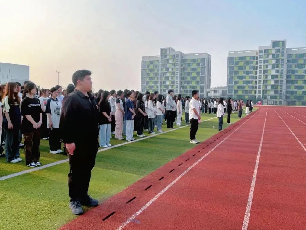 伴随着激昂的《义勇军进行曲》,全体师生肃立,注视着国旗冉冉升起,望着五星红旗在蓝天间飘扬,同学们的眼神中流露出对祖国繁荣昌盛的自豪与对未来发展的坚定信念。