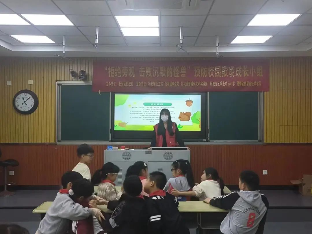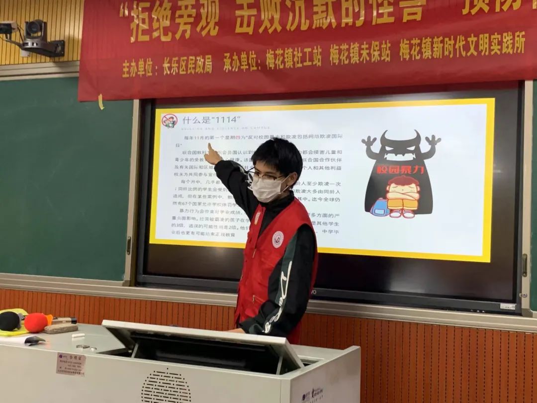 为深入巩固主题教育,夯实思想根基,构建平安和谐校园,预防校园欺凌事件发生,增强学生法治意识,提高自我保护能力,引导学生树立正确的法律意识。2024年4月12日,智能建造产业学院学生党支部联合梅花镇社工站前往梅花中心小学开展反校园欺凌主题宣讲活动。