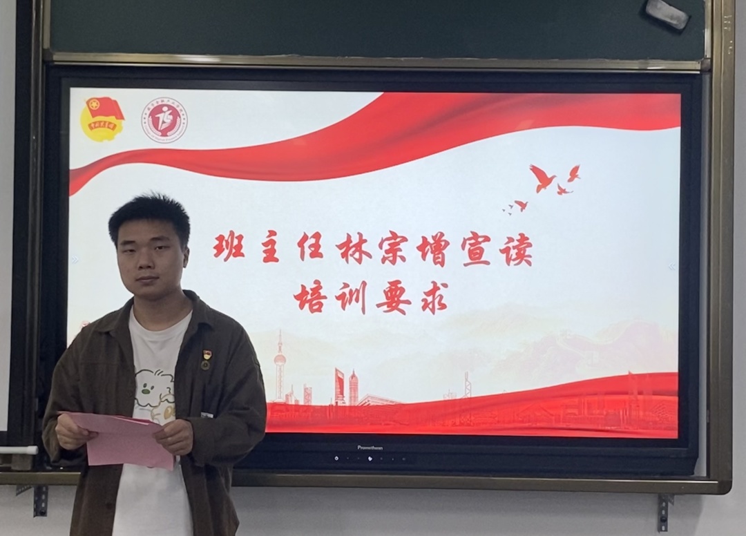 开班仪式上,班主任林宗增老师介绍了本期入团积极分子培训班的基本情况与团课学习内容,宣读了培训班纪律条例与学员公约。强调全体学员要坚定理想信念,提高政治意识,树立正确的入团动机,以积极进取的态度自觉接受团组织的长期考验,将团员的各项要求内化于心,外化于行。希望全体学员可以在团组织的指引下,努力成为堪当民族复兴大任的时代新人。