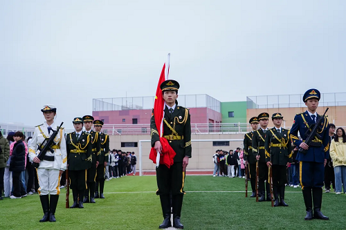 仪式伊始,在激昂的音乐声中,英姿飒爽的国旗护卫队怀着激昂饱满的心情,迈着铿锵有力的步伐,护送着鲜艳的五星红旗来到国旗台前,伴随着嘹亮的《义勇军进行曲》响起,五星红旗缓缓升起,全体师生肃穆行注目礼,升起的不仅仅是国旗,还有我校师生对未来的憧憬。