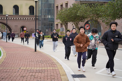 同学们带着饱满的热情,迈着矫健整齐的步伐,环绕着护城河奔跑。这同时展现了容艺学子昂扬奋发的风采和积极向上的精神风貌,也形成了校园里一道整齐、独特、亮丽的风景线。