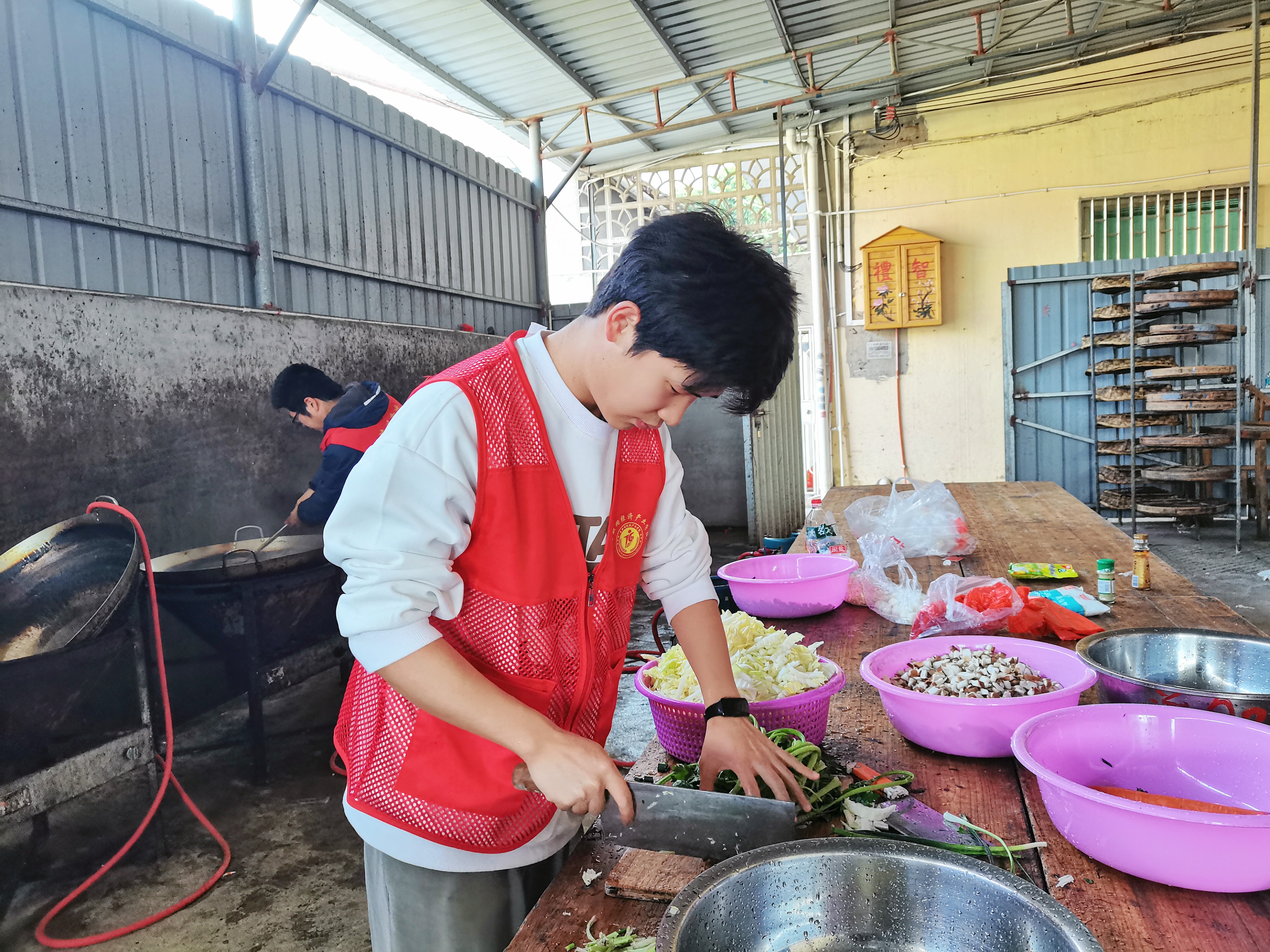 当日清晨,志愿者们熟练地挽起袖子,早早地开始了熬制拗九粥的工作。他们将糯米、白菜、皮蛋、荠菜等丰富食材下入锅中,通过浸泡、蒸煮、入糖、搅拌等系列工序,空气中开始弥漫着拗九粥的香气,仿佛在诉说着古老的传统和温暖的情感。