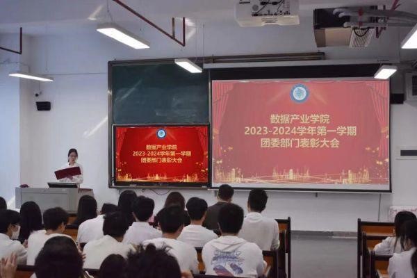 为表彰先进,树立典型,进一步激励学院团委各部门优秀干事在部门的建设和学生工作中再创佳绩,于2023年12月29日11:00,数据产业学院于A303教室召开2023年度部门优秀干事的表彰大会。数据产业学院团委书记张梦颖出席本次会议,辅导员陈萍萍、林榛桢、卓兴涛以及学院团委各学生组织干参加此次活动。本次大会由团委办公室干事雷佳佳主持。