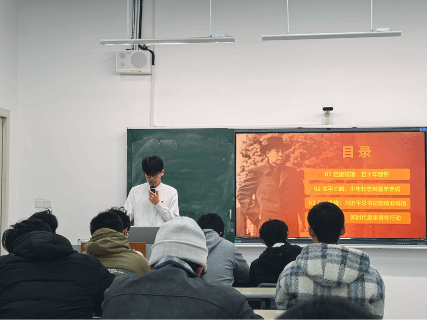 为深入学习周恩来同志的崇高风范与伟大精神,引导入党积极分子们坚定理想信念、强化使命担当,在周恩来同志逝世50周年之际,我校未来技术产业学院学生第一、二党支部于2026年1月20日在L322开展“穗穗红芯·麦苗青”党员微党课第二十三讲。本次课程由学生党员陈俊鹏同志主讲,通过重温周恩来同志的光辉事迹与精神品格,激励入党积极分子们在新时代新征程中汲取榜样力量,践行初心使命。