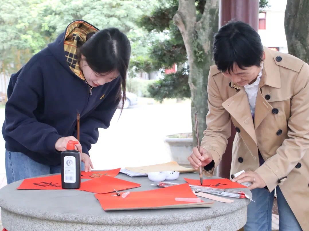 活动伊始,实践队抵达猴屿乡,一场墨香满溢的新春送福活动温情启幕。队员们以青春为墨,以红纸为媒,以笔墨为桥,与当地居民围桌并肩、同台挥毫,共同书写春联福字。遒劲的笔画勾勒新春希冀,浓醇的墨香萦绕邻里温情,队员们将对新年的美好期许、对乡村的真挚祝福,一笔一划融入笔墨间,让红火的春联成为联结彼此的纽带,让即将到来的新春喜庆与温暖在指尖流转、在乡间蔓延。