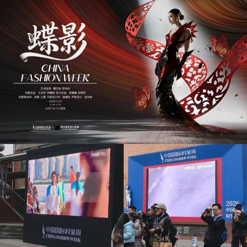 当东方非遗遇上数字先锋,当传统美学碰撞科技利刃,一场关于文化传承与时尚创新的视觉盛宴正在上演。近日,福州软件职业技术学院数字影视传媒产业学院外聘教师罗伟伦带领2025级融媒体技术与运营专业的钟健琪,携手郑州科技学院艺术学院教师郭雁(攀艺树)与怪小怪创新创业团队共同打造的 《蝶影》系列数字非遗作品 ,以 “锐意新生” 为创作内核,惊艳亮相 2026 中国国际时装周,用数字技术解构传统美学,以先锋姿态诠释非遗与时尚的融合新生。