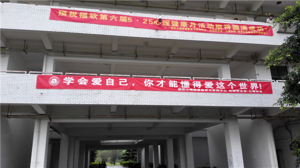 “在心理健康节到来之际,我们向全校同学倡导这样一种生活理念:珍爱自己,关爱他人,努力构建和谐心理、和谐校园、和谐社会。