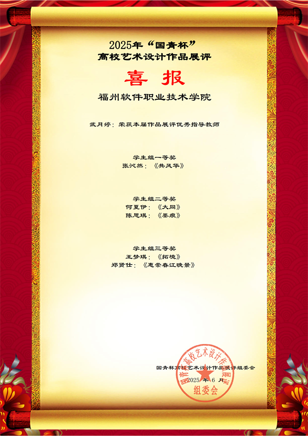 2025年“国青杯”全国高校艺术设计作品大赛落下帷幕。我校师生在本次活动中表现优异,最终斩获一等奖1项、二等奖2项、三等奖2项,通识教育中心——武月婷教师荣获优秀指导教师称号。